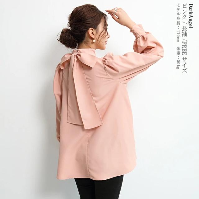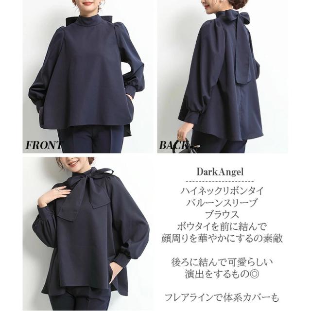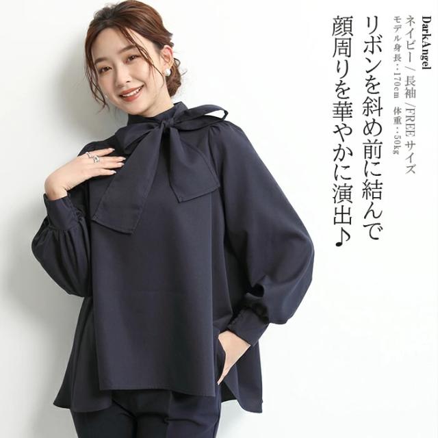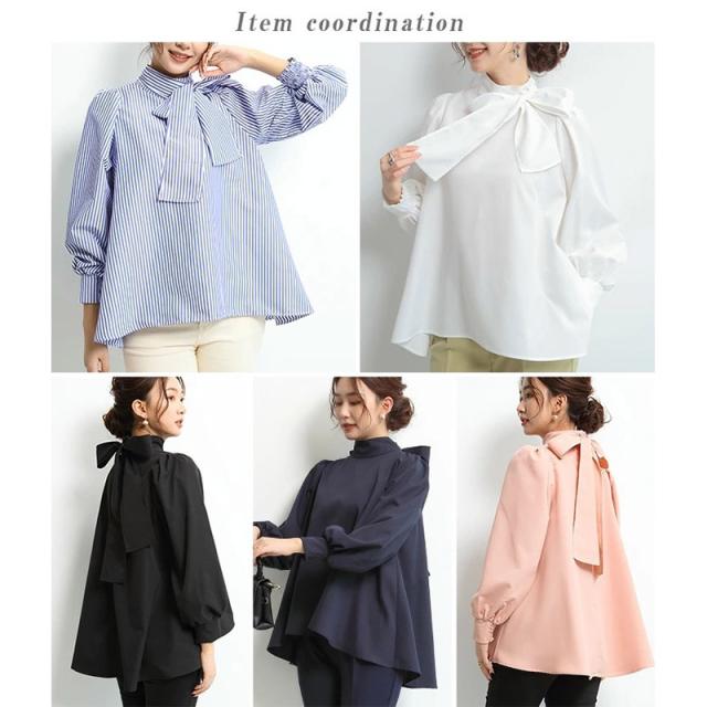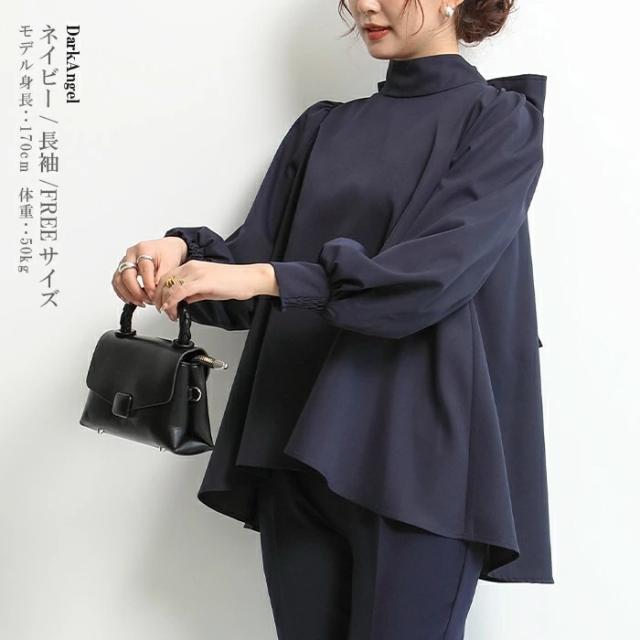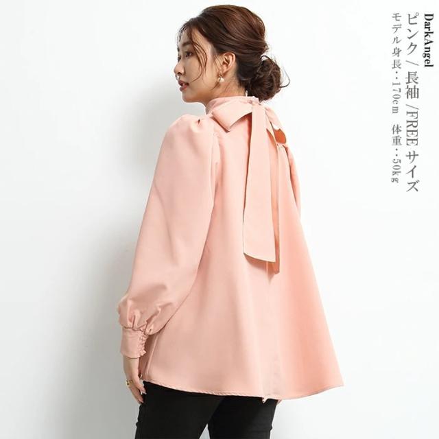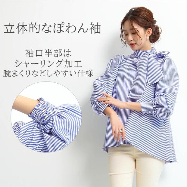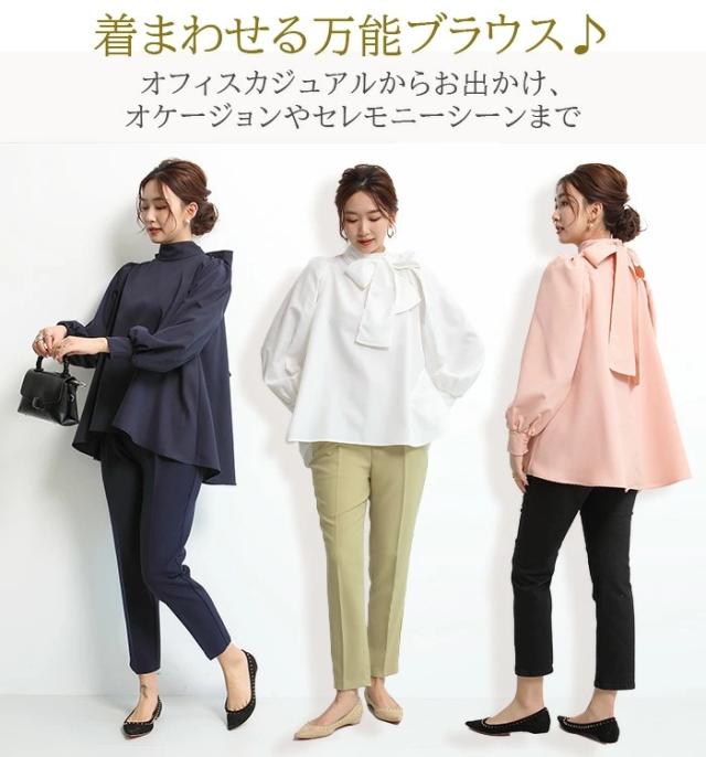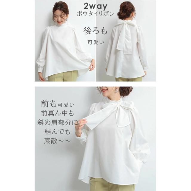 ブラウス レディース長袖 パフスリーブ ノーカラー ハイネック リボン フォーマル 春夏 パフスリーブリボンフレアブラウス 結婚式