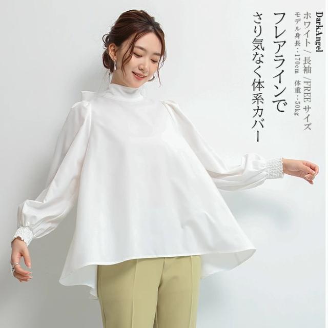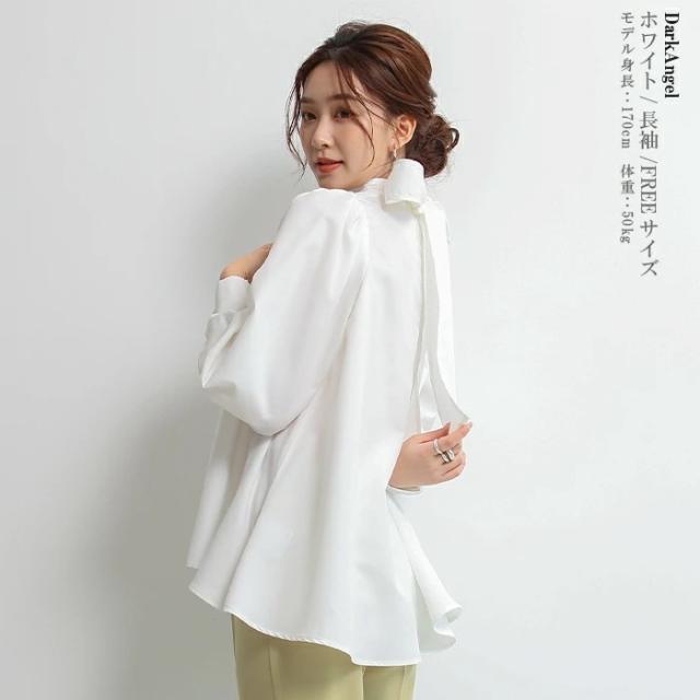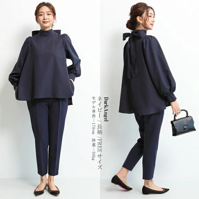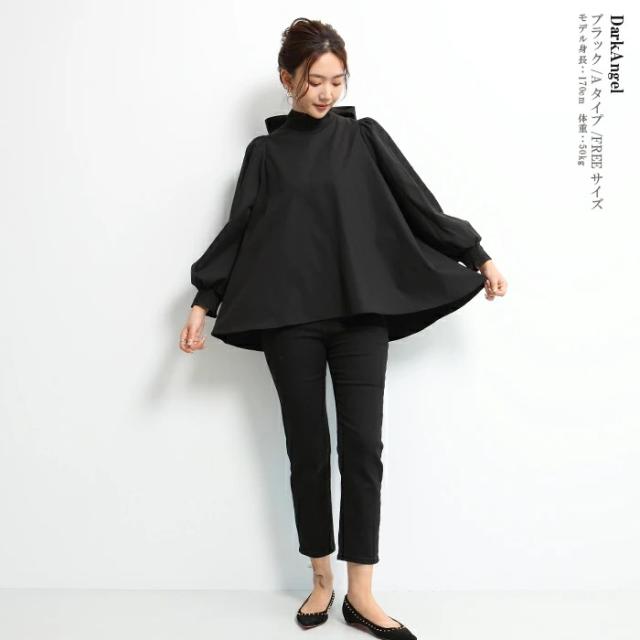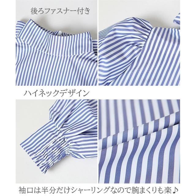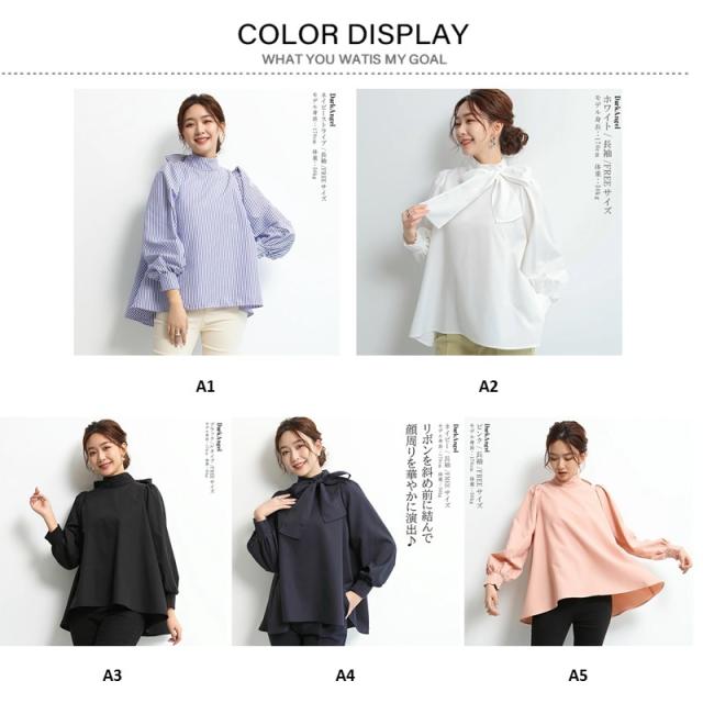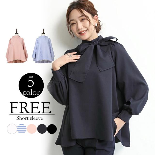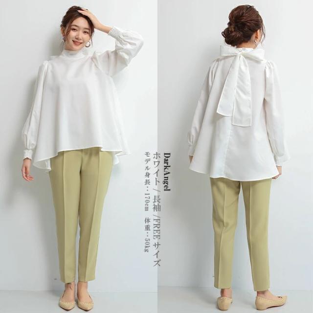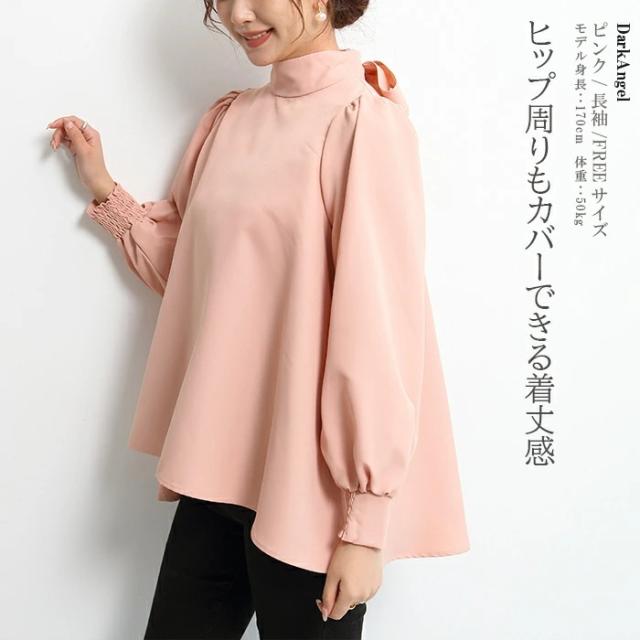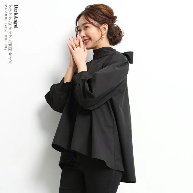ブラウス レディース長袖 パフスリーブ ノーカラー ハイネック リボン フォーマル 春夏 パフスリーブリボンフレアブラウス 結婚式