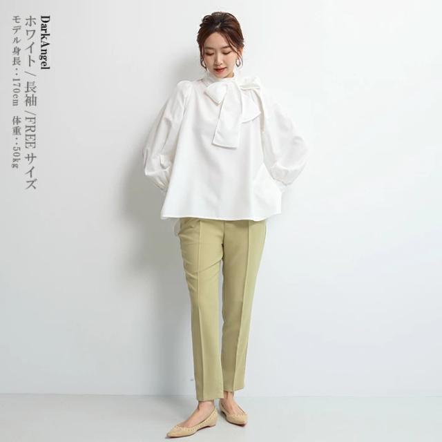 大ぶりリボン×パフスリーブが華やかなブラウスは、