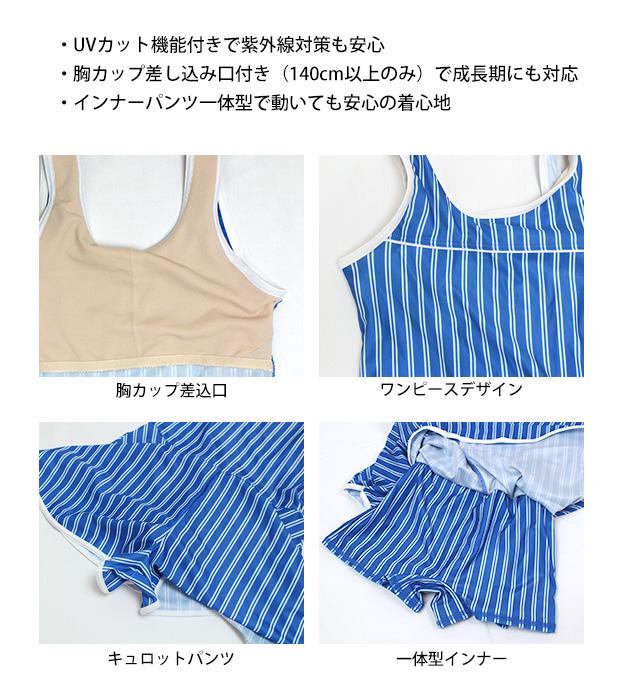| 商品説明 | サイズ展開:130cm 140cm 150cm 160cm 対象:女の子 ガールズ ジュニア キッズ 小学生 タイプ:ワンピース水着 Tシャツ付き 2点セット ストライプ柄キュロット型のワンピース水着とビッグTシャツの2点セット ・紫外線対策 UVカット ・胸カップ差し込み口あり(130cm以外) ※胸カップ別売りあります |