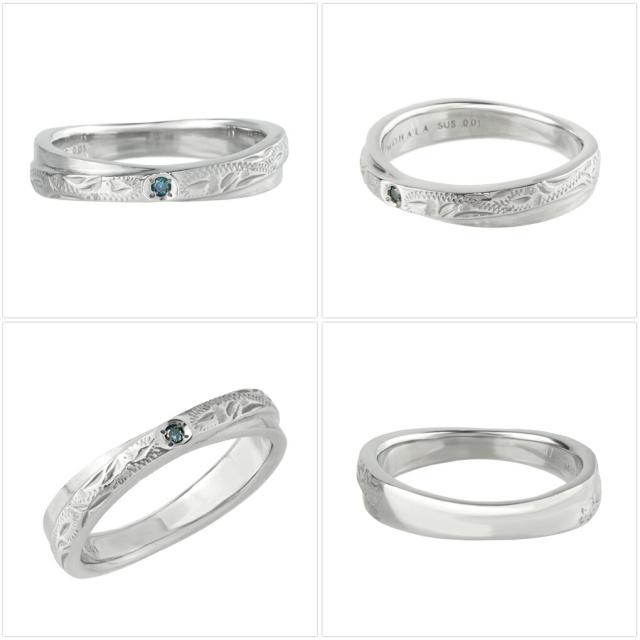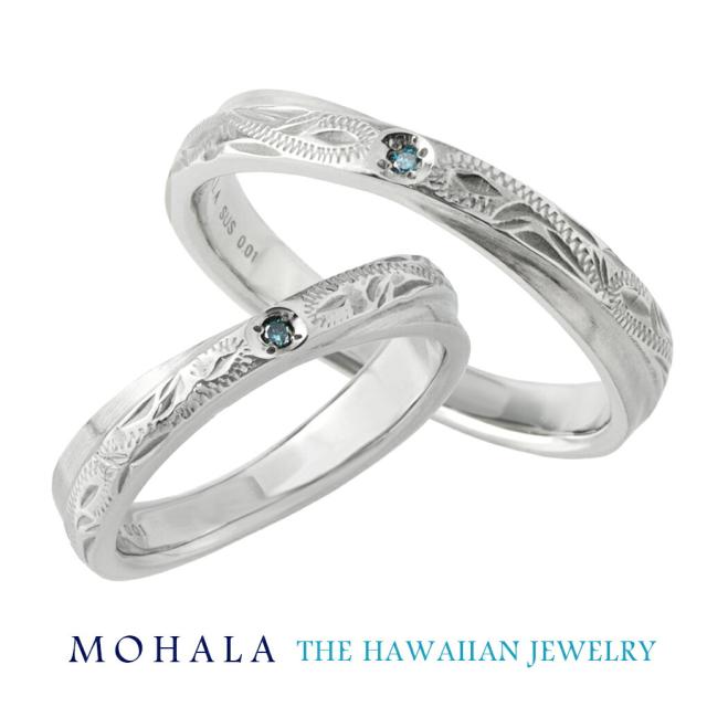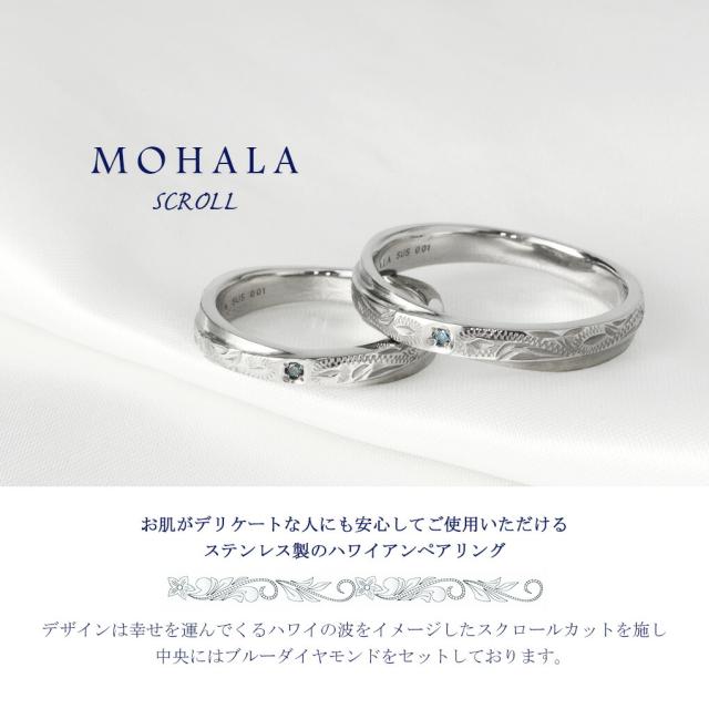 MOHALA モハラ ステンレス ハワイアンジュエリー スクロール ブルーダイヤモンド クロス ペアリング 7〜21号 ステンレスリング 金属アレルギー 指輪
