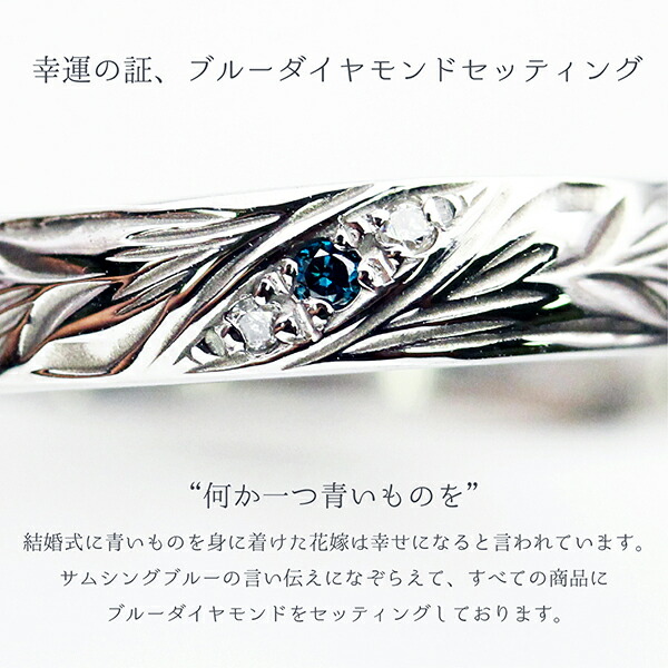 サムシングブルーの言い伝えになぞらえてすべての商品にブルーダイヤをセッティングしております。