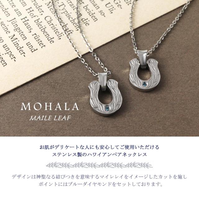 MOHALA モハラ ステンレス ハワイアンジュエリー マイレ リーフ ブルーダイヤモンド 馬蹄 ペアネックレス チェーン付き ステンレスネックレス