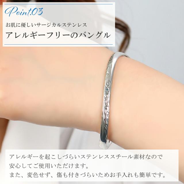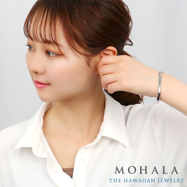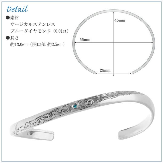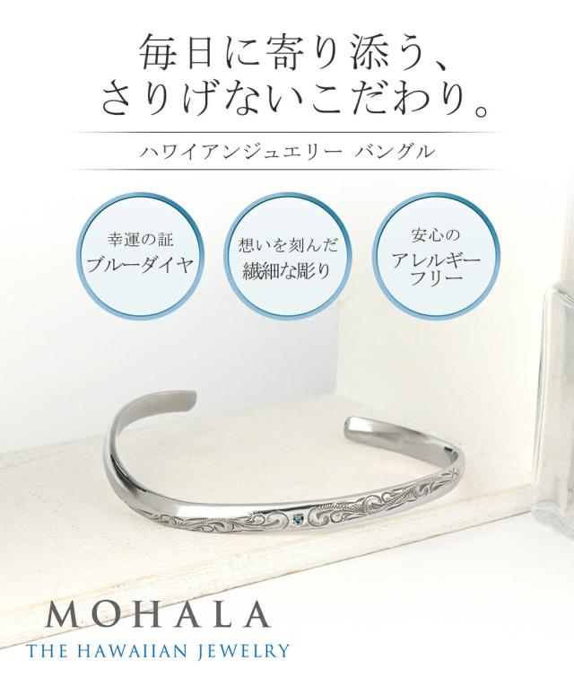 MOHALA モハラ ステンレス ハワイアンジュエリー プリンセスカット ブルーダイヤモンド バングル レディース ステンレスバングル 金属アレルギー 彫刻