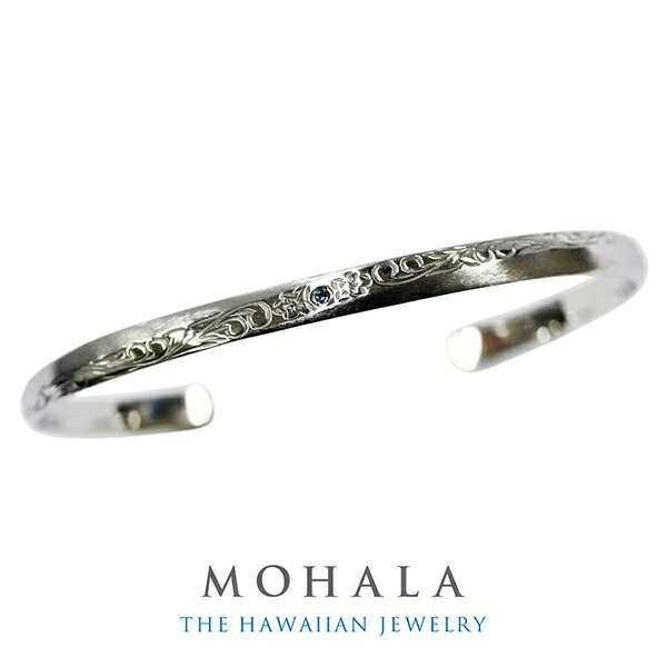 【MOHALA/モハラ】 ステンレス ハワイアンジュエリー スクロール ブルーダイヤモンド バングル