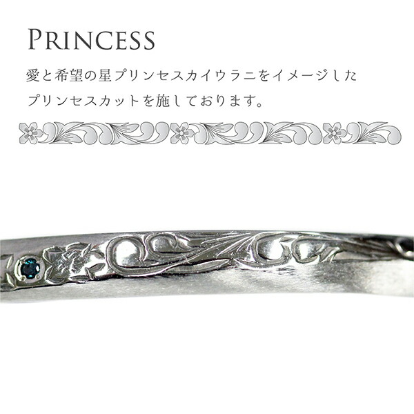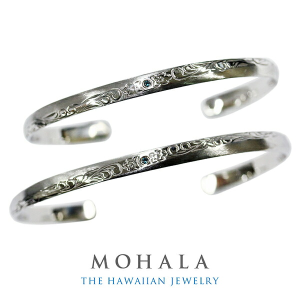 MOHALA モハラ ステンレス ハワイアンジュエリー スクロール ブルーダイヤモンド ペアバングル ステンレスバングル 金属アレルギー 彫刻 波 植物 唐草