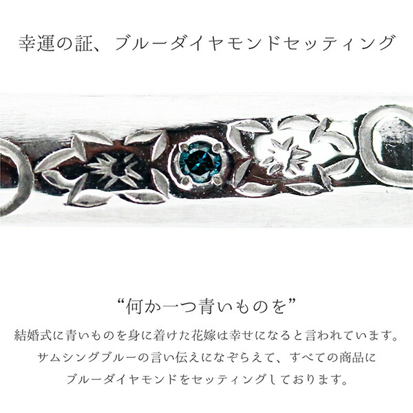 サムシングブルーの言い伝えになぞらえてすべての商品にブルーダイヤをセッティングしております。