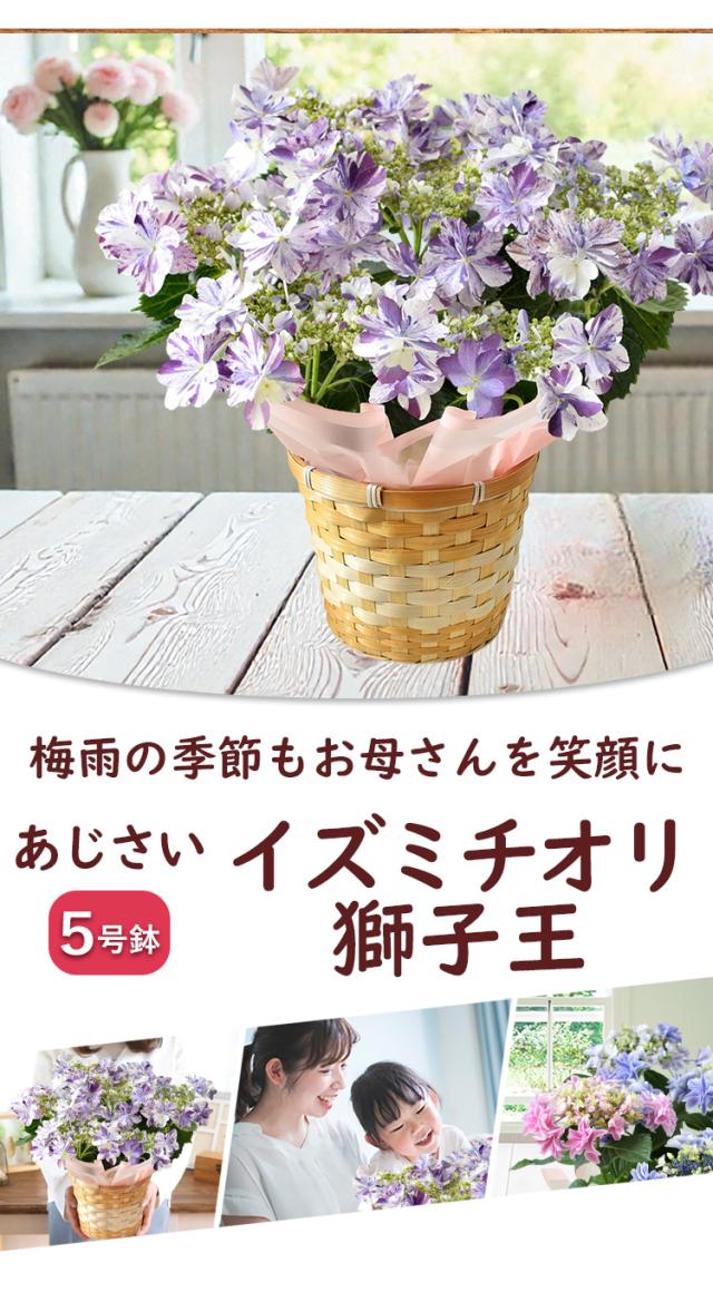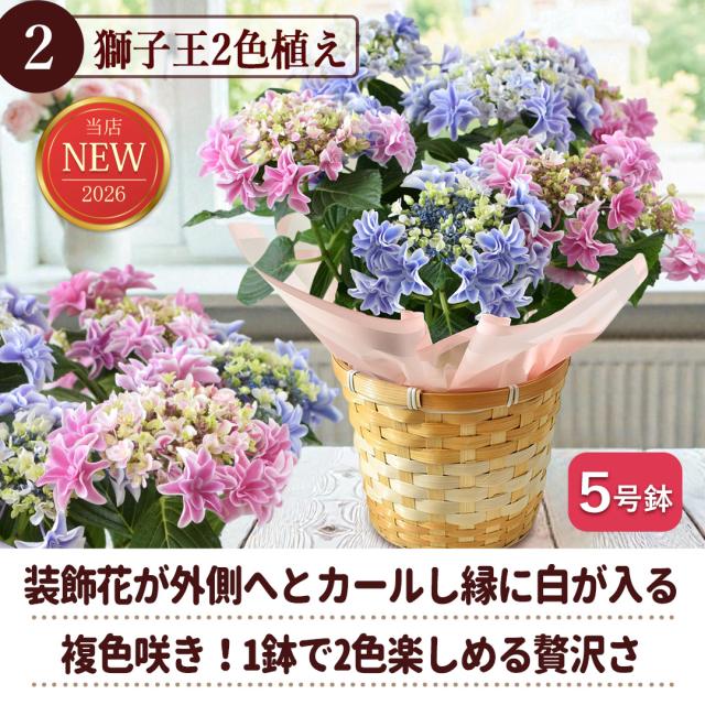 特早割 母の日 2026 イズミチオリ 獅子王2色植え あじさい 鉢植え in バスケット 花 紫陽花 希少品種 受賞品種 4号鉢 5号鉢 鉢花 プレゼント ギフト 花鉢 珍しい 多年草 毎年 咲く 母の日ギフト お花 母 お母さん 義母 アジサイ かご入 衣純千織