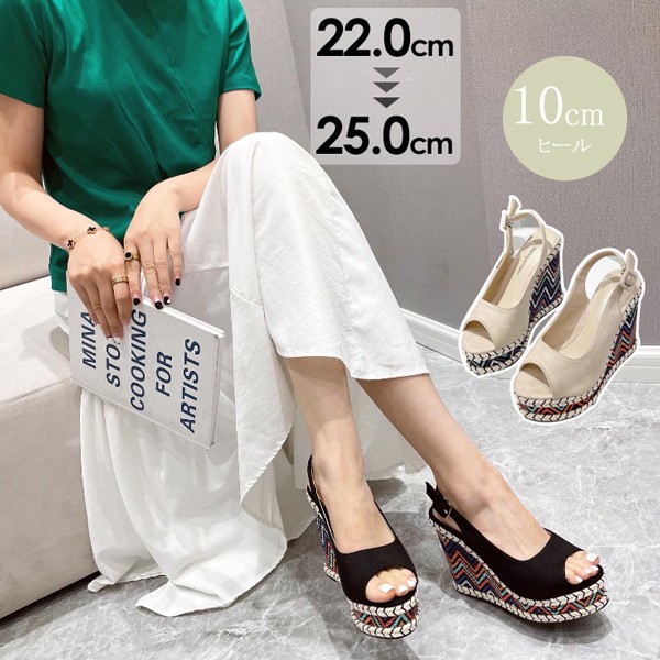 ウェッジサンダル スエード ヒール10cm レディース 夏靴 厚底サンダル かかと あり ヒールサンダル バックストラップ エスパドリーユ ジュート シューズ 黒 ベージュ 小さいサイズ 大きいサイズ 大人 かわいい 夏 22.0 22.5 23.0 23.5 24.0 24.5 25.0 ei020l9l9la