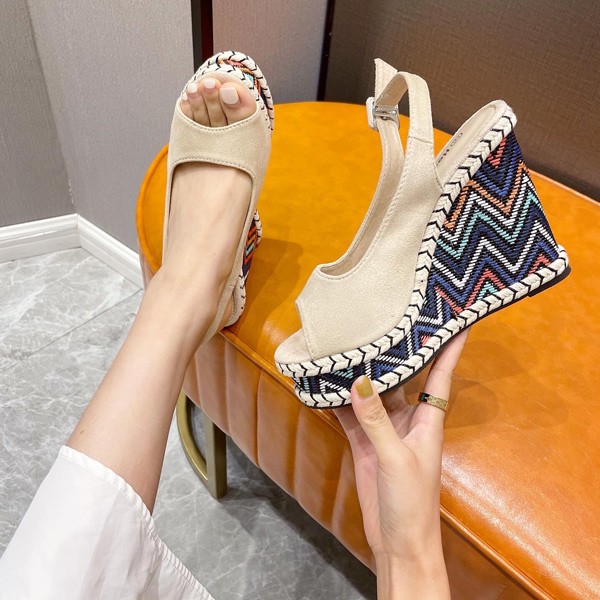ウェッジサンダル スエード ヒール10cm レディース 夏靴 厚底サンダル かかと あり ヒールサンダル バックストラップ エスパドリーユ