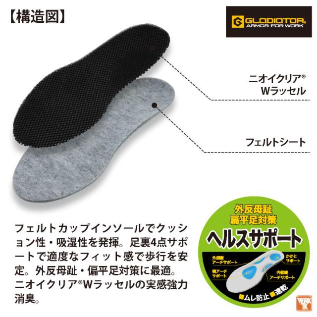 G-204 ニオイクリア 消臭 カップインソール 外反母趾 偏平足 ムレ防止 速乾 GLADIATOR CO-COS