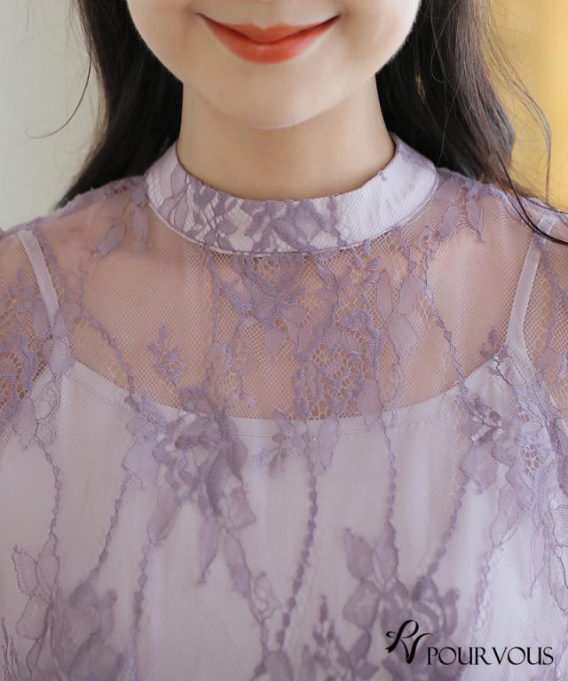 インナーワンピースとの配色がレースの繊細さを際立たせて上品な印象に。