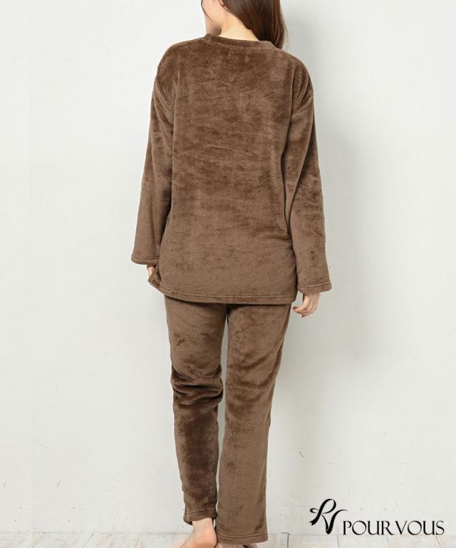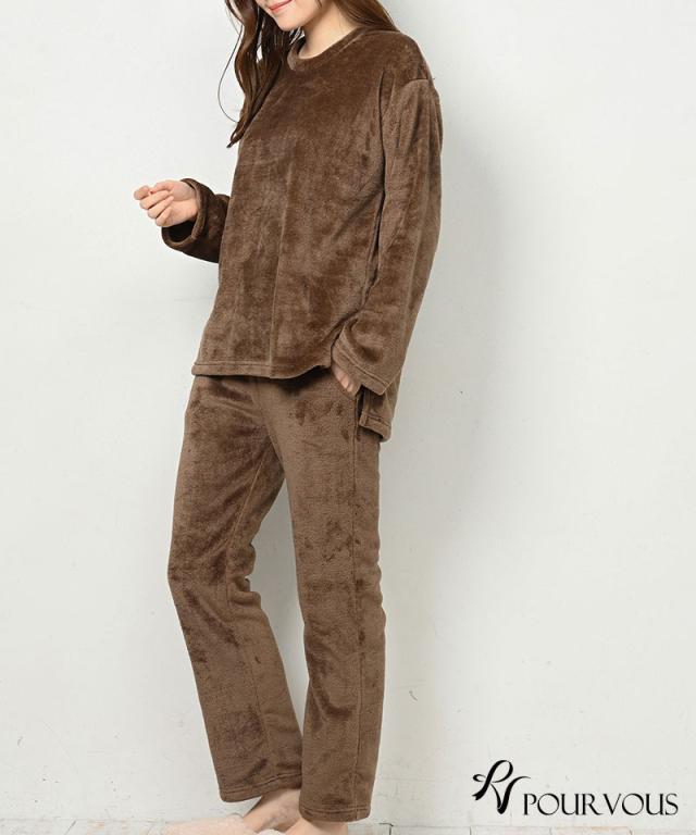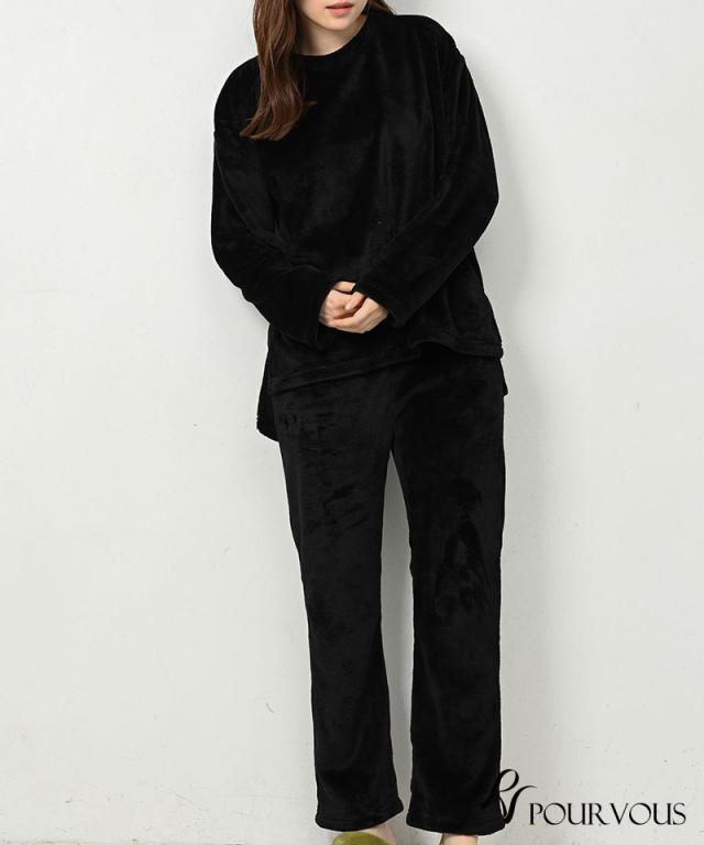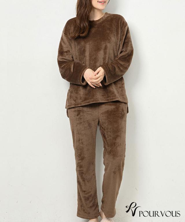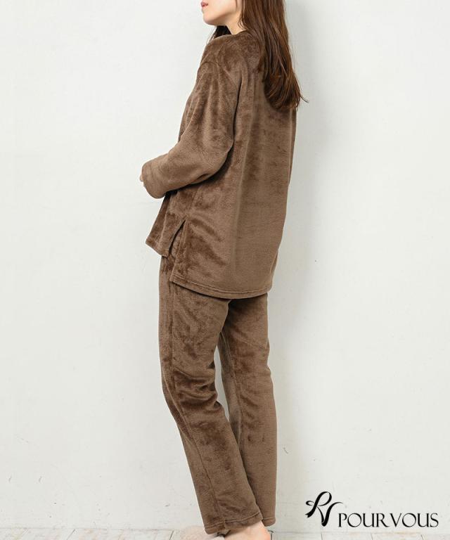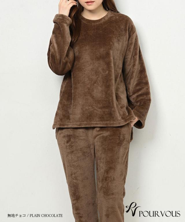 ファーフリース上下セット【465222019】 レディース ルームウェア ナイトウェア 部屋着 パンツ パジャマ セットアップ ワンピース 寝間着 上下セット 夏 春 S M L 20代 30代 40代 50代 3点セット 無地 キャミソール 長袖 ウエストゴム 大きいサイズ