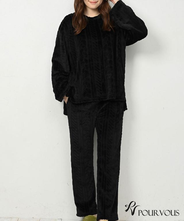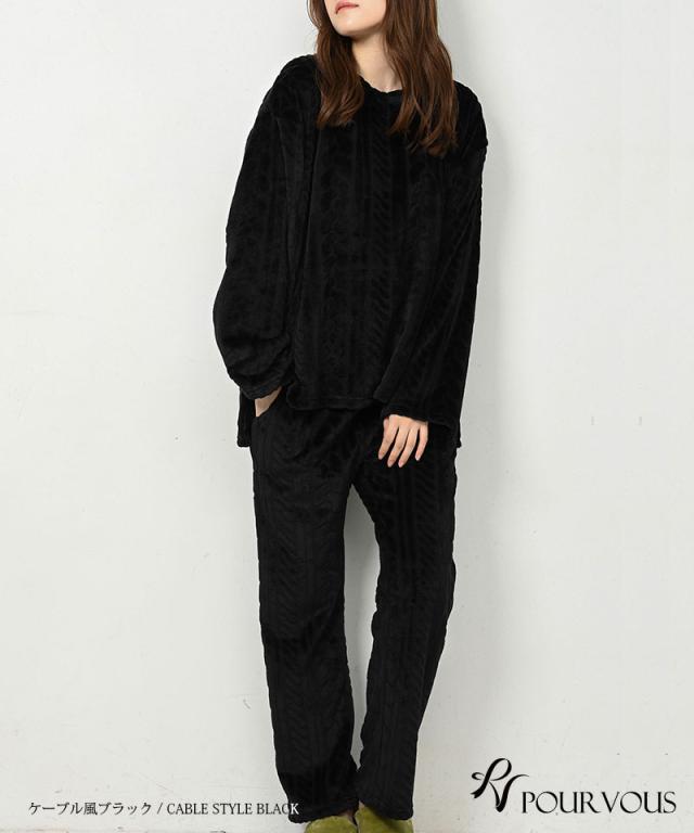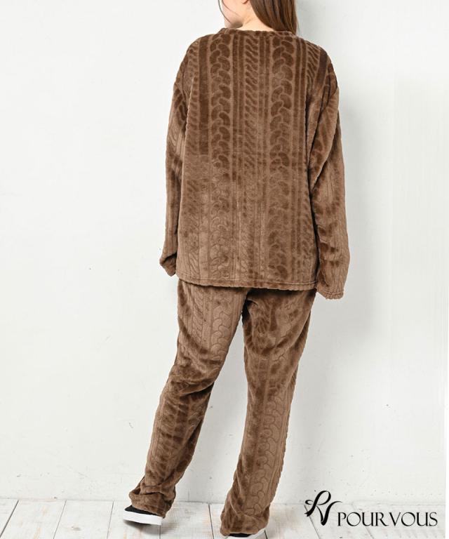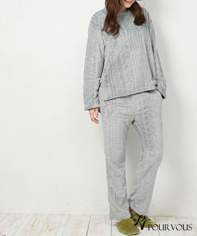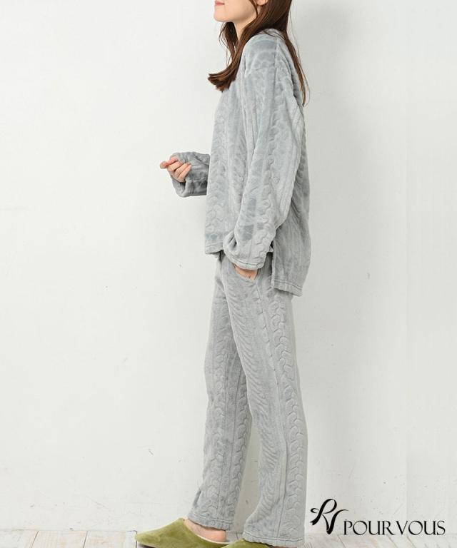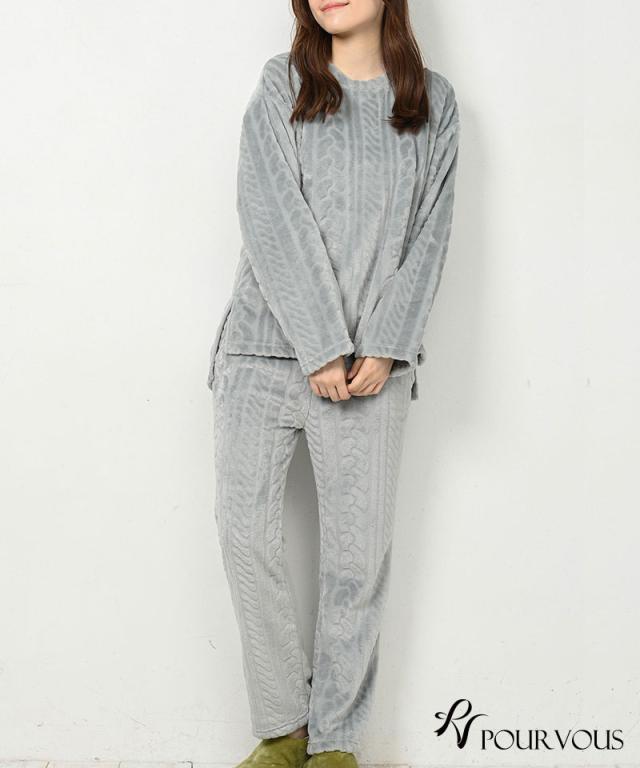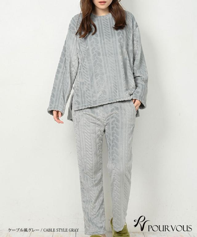 無地とケーブル柄の2タイプの上下セットルームウエア