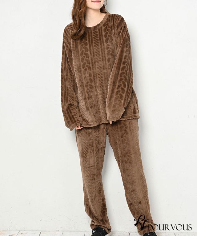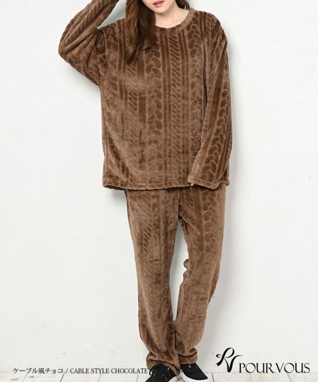 465222019 レディース ルームウェア 部屋着 ナイトウェア 寝間着 パジャマ ワンピース パンツ 上下セット セットアップ 夏 春 S M L XL 3L 20代 30代 40代 50代 長袖 無地 ルームウエア ゆったり 体型カバー 大きいサイズ リラックス 大人可愛い 冬 ファーフリース ケーブル柄