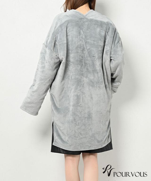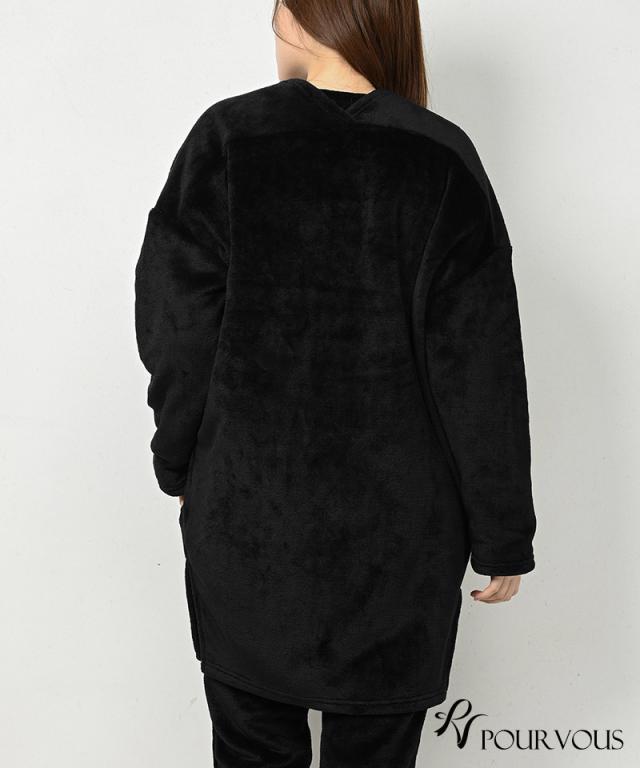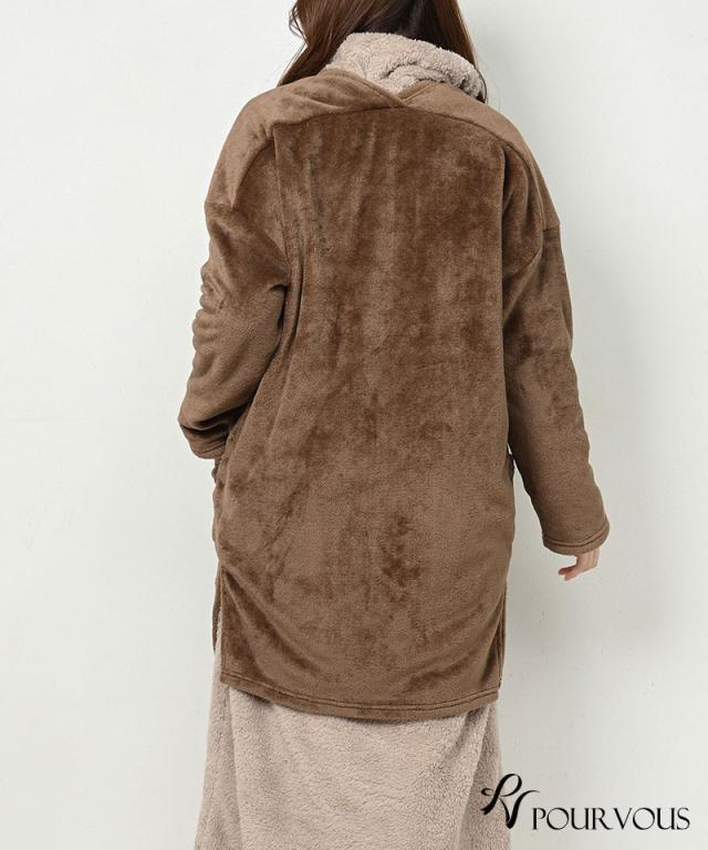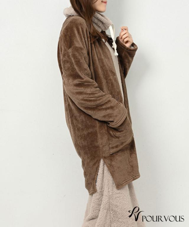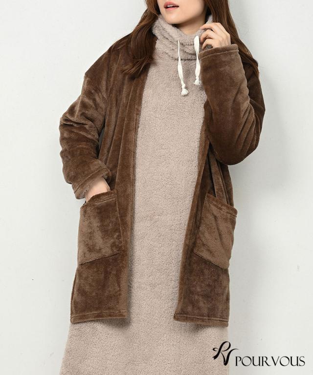 466222019 ルームウェア レディース 部屋着 ワンピース ナイトウェア 無地 長袖 寝間着 前開き 体型カバー 大きいサイズ 大人可愛い 可愛い ゆったり ビッグシルエット かわいい シンプル もこもこ フェイクファー 可愛い オーバーサイズ 20代 30代 40代 50代 ミドル丈