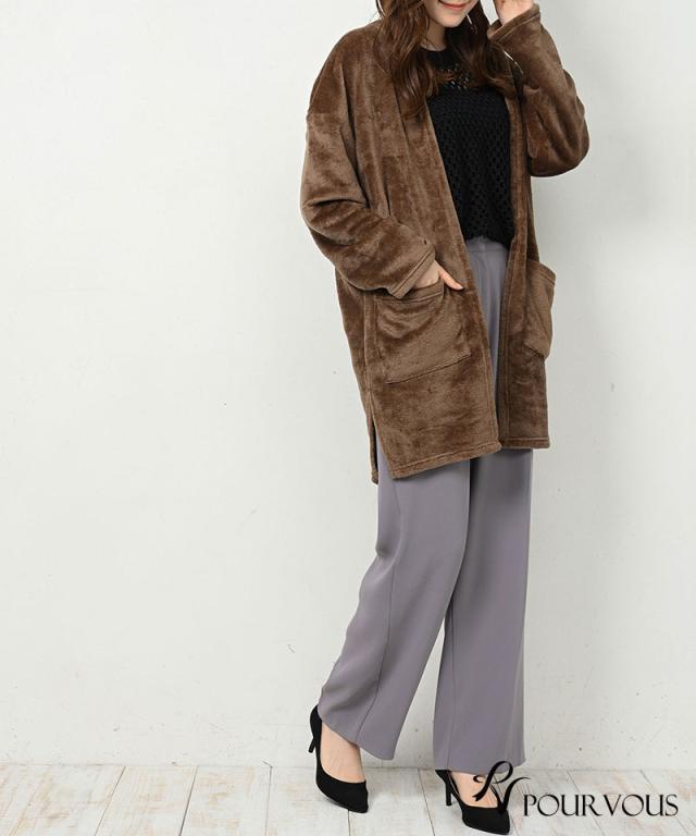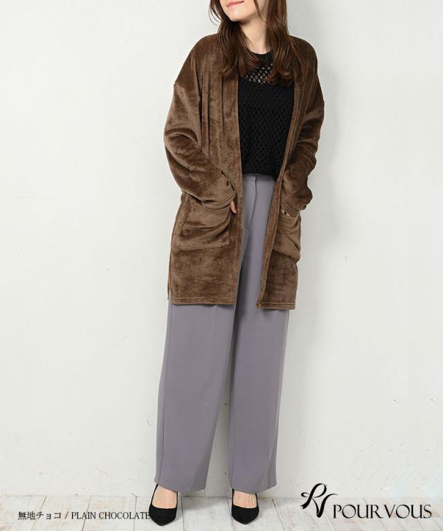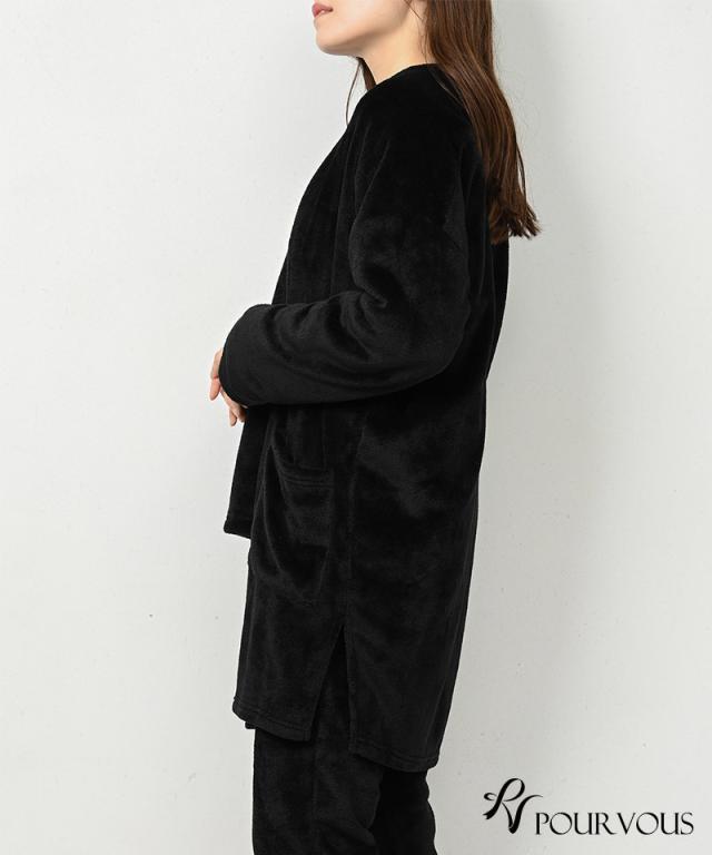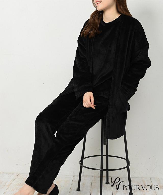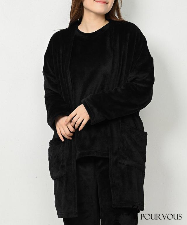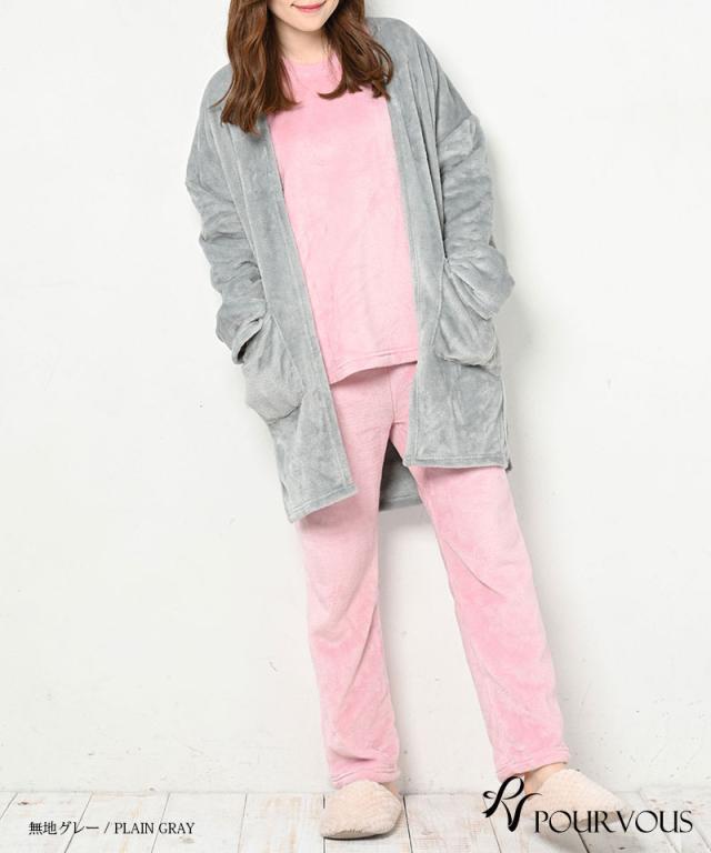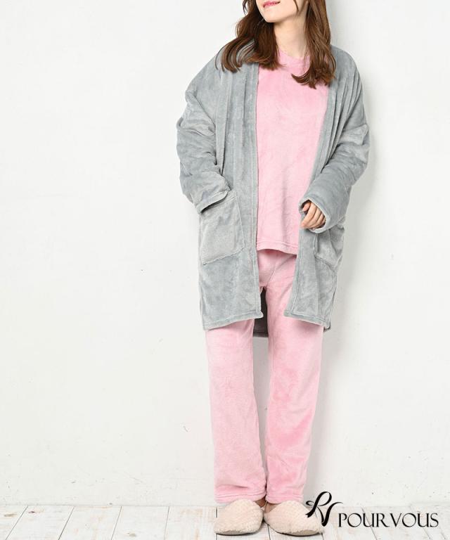 ファーフリースミドル丈ガウン【466222019】 レディース ルームウェア ナイトウェア 部屋着 パンツ パジャマ セットアップ ワンピース 寝間着 上下セット 夏 春 S M L 20代 30代 40代 50代 3点セット 無地 キャミソール 長袖 ウエストゴム 大きいサイズ