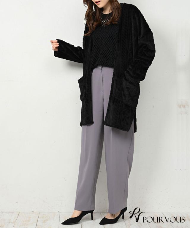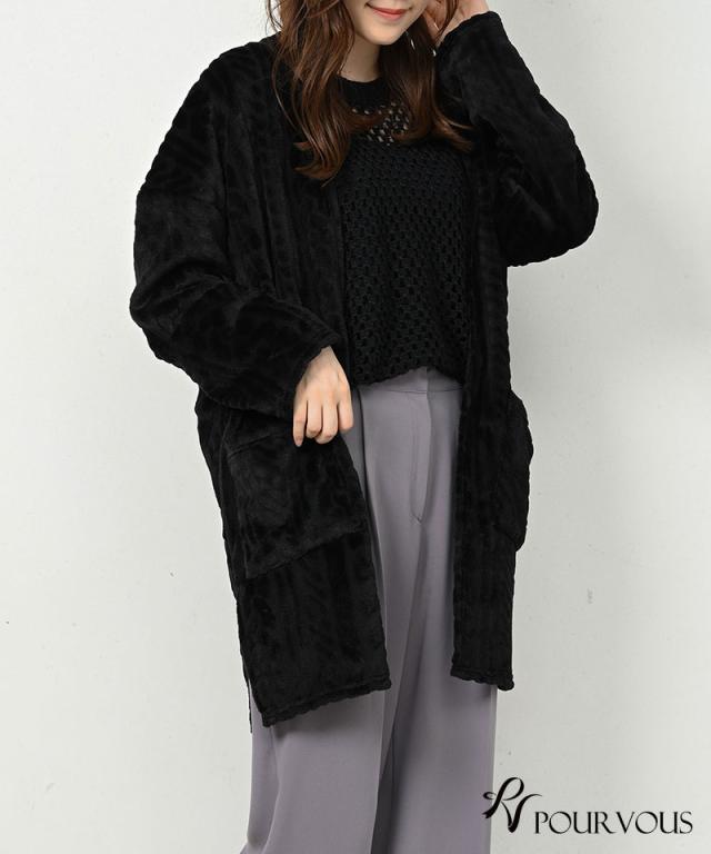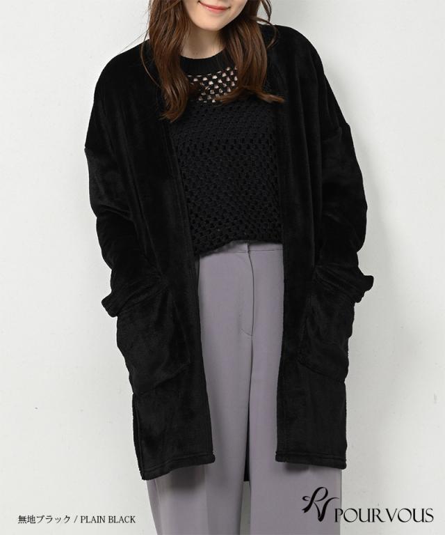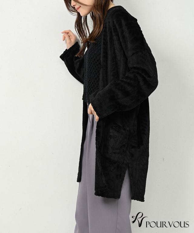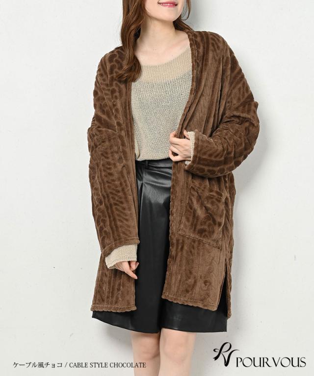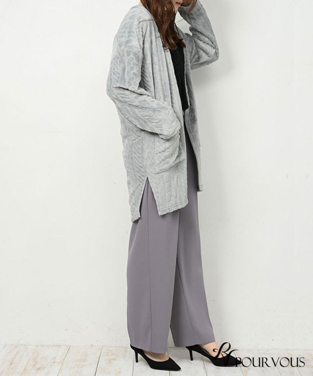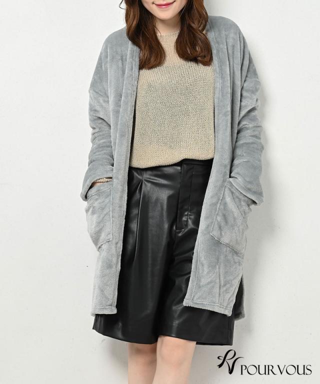 ファーフリースミドル丈ガウン【466222019】 レディース ルームウェア ナイトウェア 部屋着 パンツ パジャマ セットアップ ワンピース 寝間着 上下セット 夏 春 S M L 20代 30代 40代 50代 3点セット 無地 キャミソール 長袖 ウエストゴム 大きいサイズ