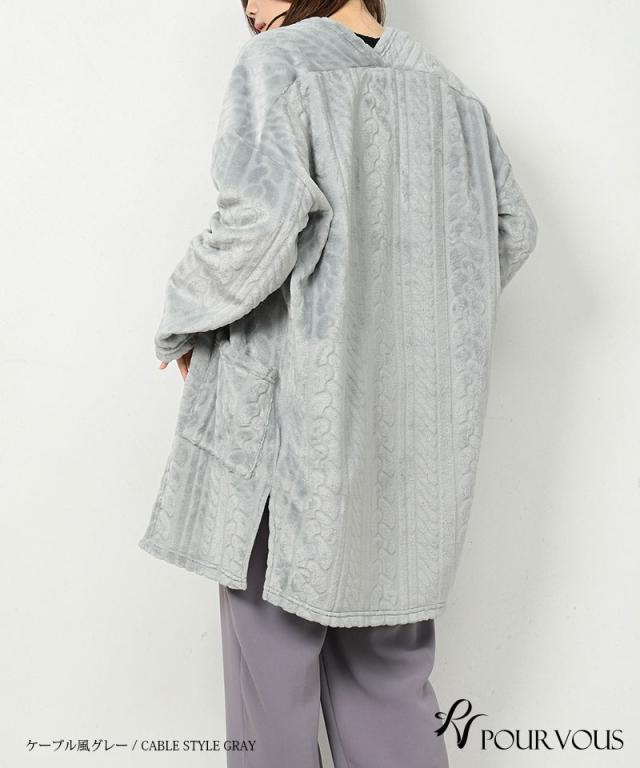 無地とケーブル柄の2パターンのミドル丈のガウンです。