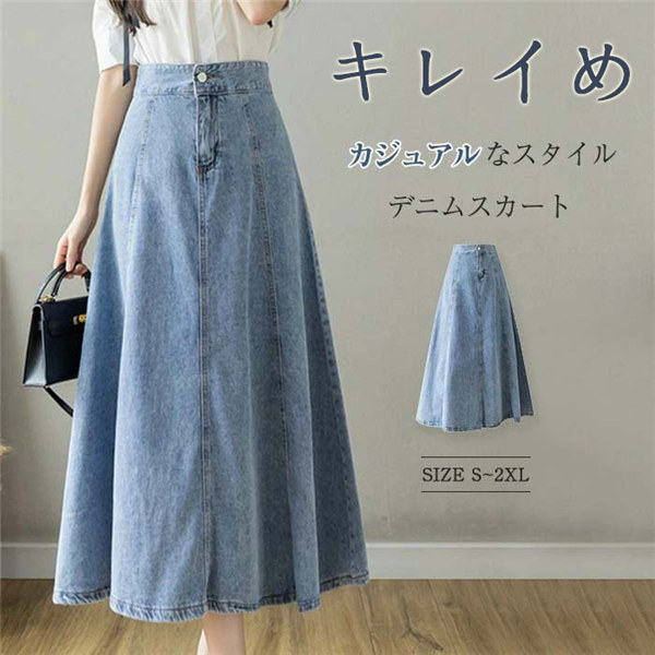 デニムスカート レディース デニム素材 膝下 ロング丈 ロングスカート 体型カバー 無地 痩せ見え 通勤 シンプル ゆったり 大きいサイズ 大人 無地 可愛い 春夏 秋 S M L XL de021g4g4la