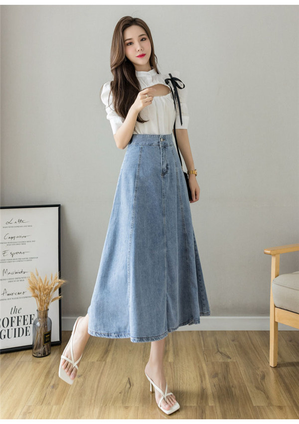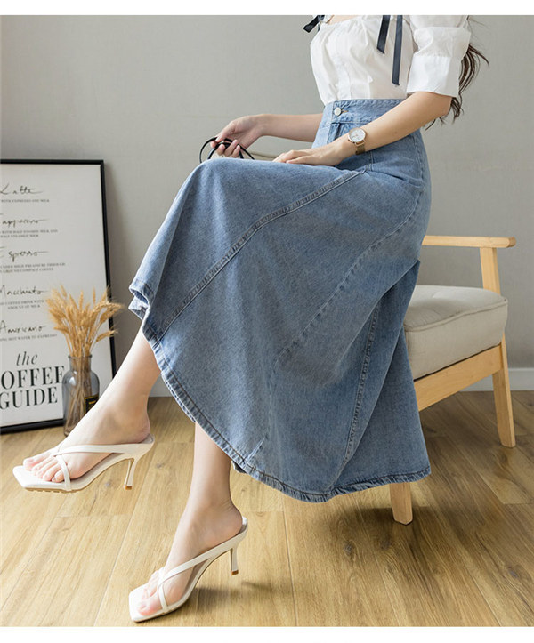デニムスカート レディース デニム素材 膝下 ロング丈 ロングスカート 体型カバー 無地 痩せ見え 通勤 シンプル ゆったり