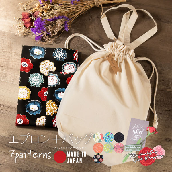 エプロン トートバッグ付き「フラワー 麻の葉 七宝 オお花 ブーケ 編み物風のお花 全7柄」日本製 オシャレ かわいい オリジナル カフェエプロン 母の日 敬老の日 プレゼント ギフト カーネーション 誕生日【メール便不可】