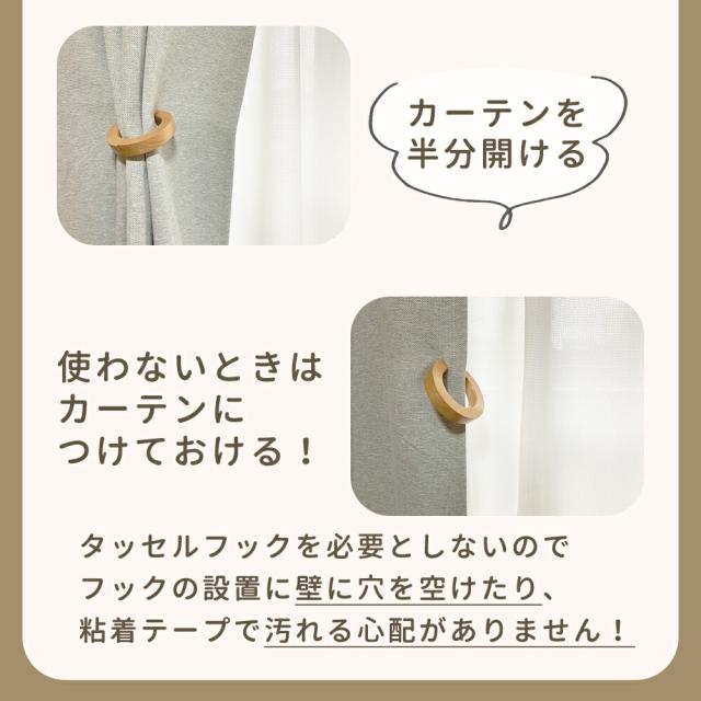 カーテンホルダー 2個セット 木製 カーテンタッセル リング マグネット とめ具 おしゃれ インテリア タッセル カーテン留め 北欧 カーテン 留め ハンガー マグネット式 かわいい 可愛い フック アクセント ナチュラル 束ねる クリップ アクセサリー mitas TN-CTHD