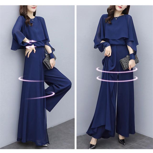 セットアップ レディース 夏 シャツ 涼しい シフォン ガウチョパンツ 夏服 カジュアル 2点セット 韓国風 ボトムス 通勤 OL
