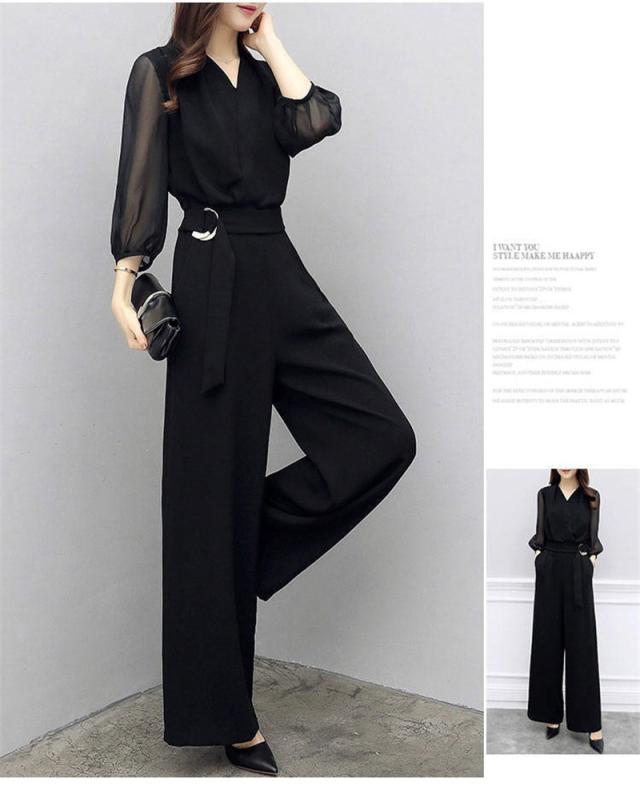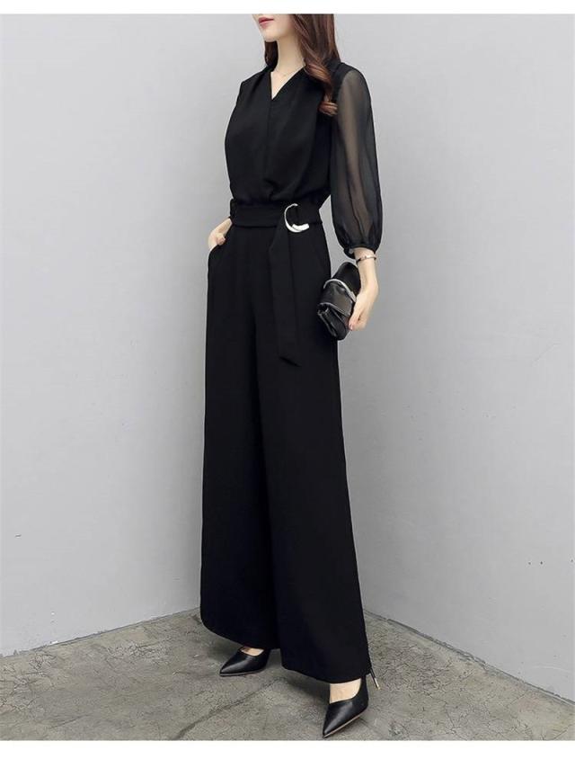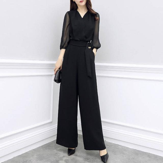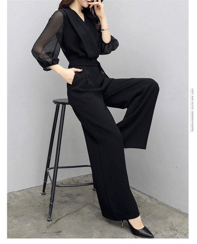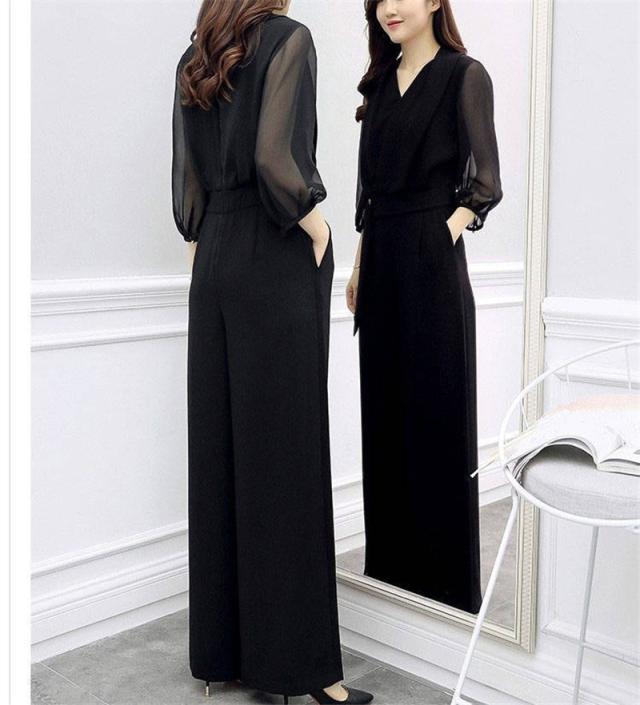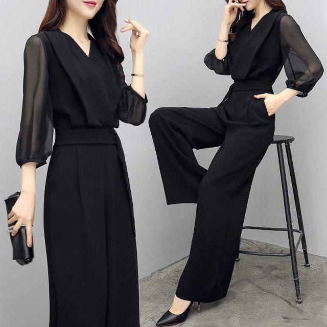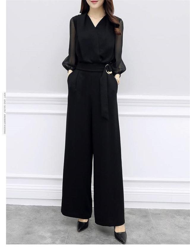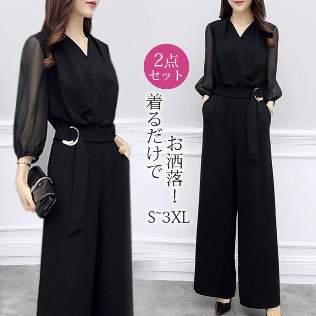 セットアップ レディース 夏 シャツ Vネック シフォン ガウチョパンツ 夏服 カジュアル 2点セット 韓国風 ボトムス 通勤 O