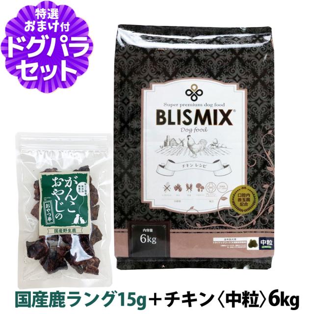 【沖縄以外送料無料】ブリスミックス チキンレシピ中粒 6kg+国産鹿ラング15g ドッグ ドックフード 鶏 乳酸菌