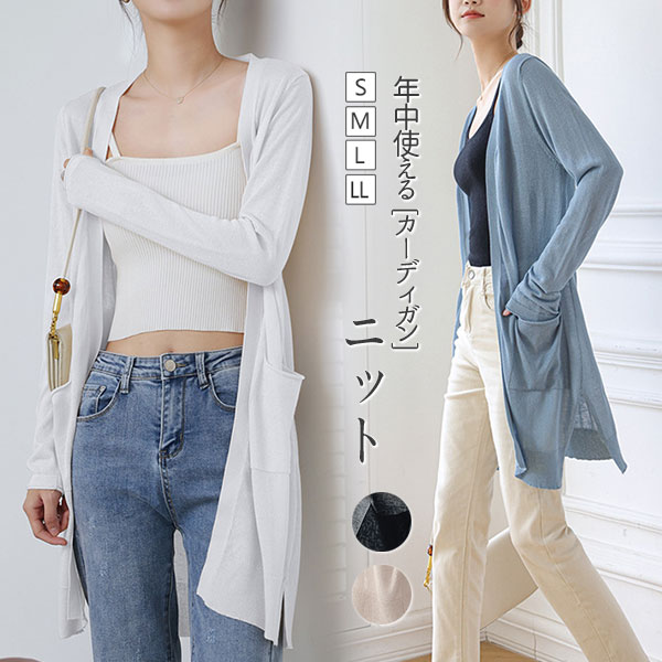 ポイント超超祭 カーディガン シアーカーディガン ロング丈 きれいめ 30代 40代 50代 スリット入り 上品 大きいサイズ 長袖 夏カーデ 無地 涼しい ゆったり