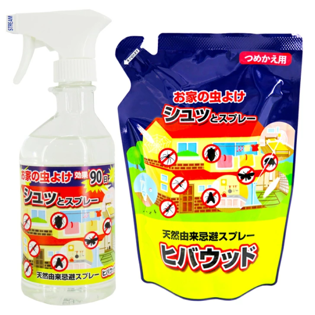 ヒバウッド1本+つめかえタイプ1袋 セット お家の虫よけスプレー 住まいの虫除けスプレー 天然由来忌避スプレー 正規代理店 ムカデ ヒノキオイル 害虫忌避剤 天然由来 ヒバウッド詰め替え用 日本製
