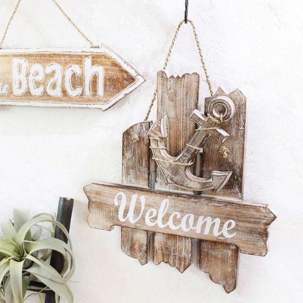 ウェルカムボード アンカー 店舗装飾 ハワイアン 木製 デザイン ウッドボード 壁掛け ビーチ