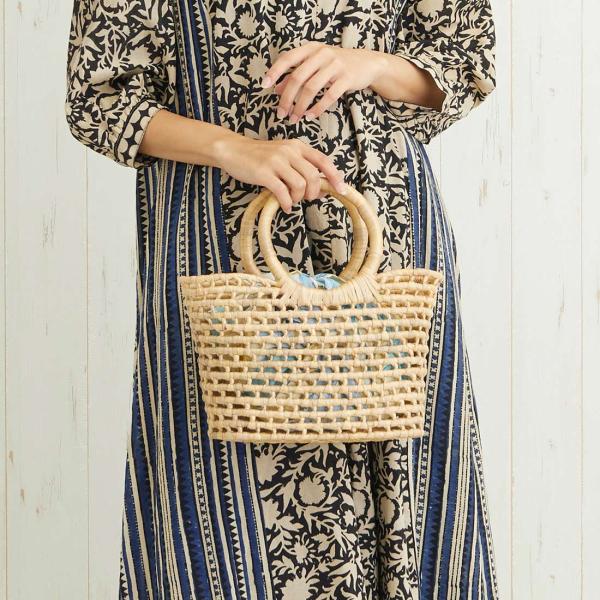 バッグ 丸ハンドル ヒヤシンス S 中にお気に入りの巾着を入れても可愛いかごバッグ♪ 職人がひとつひとつ編み上げた水草でできたカゴバッグ。 軽いのに丈夫で持ちやすい作りになっています。 巾着を入れたり、スカーフを巻いて自分好みにアレンジするのもおススメです。 ※巾着は付属しません。