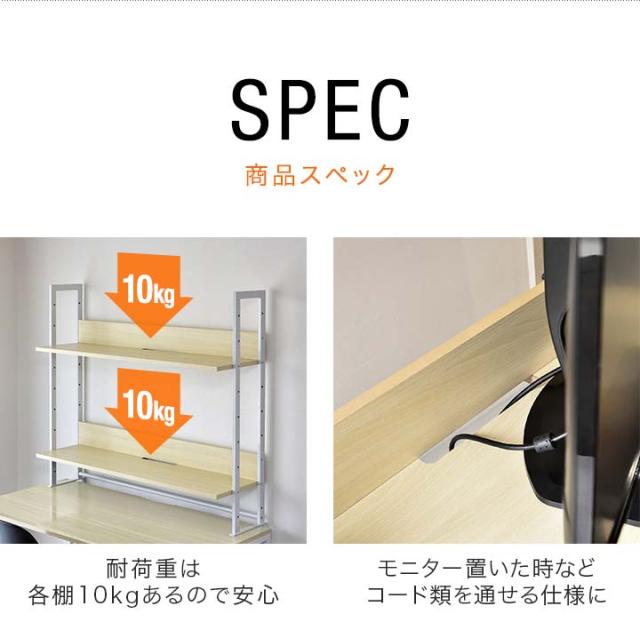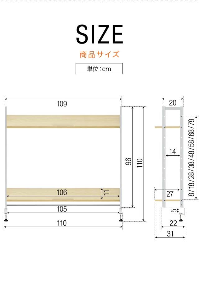 | 耐荷重: 各棚 : (約)10kg 総耐荷重 : (約)20kg |