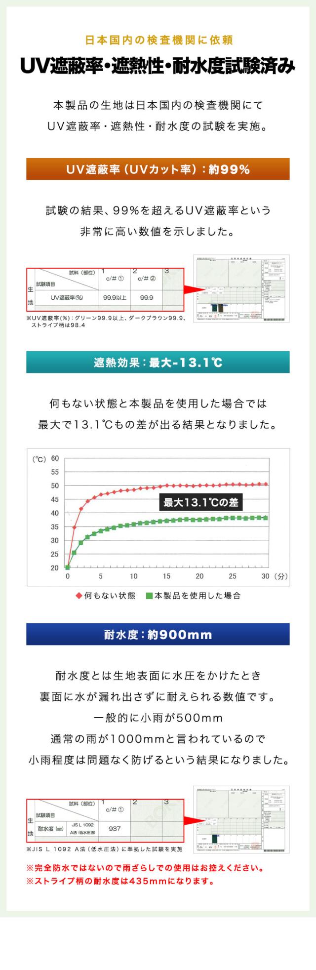 | 耐水圧: (約)900mm ※完全防水ではありませんので、雨ざらしでのご使用はお控えください。 ※ストライプ柄は435mmになります。 |