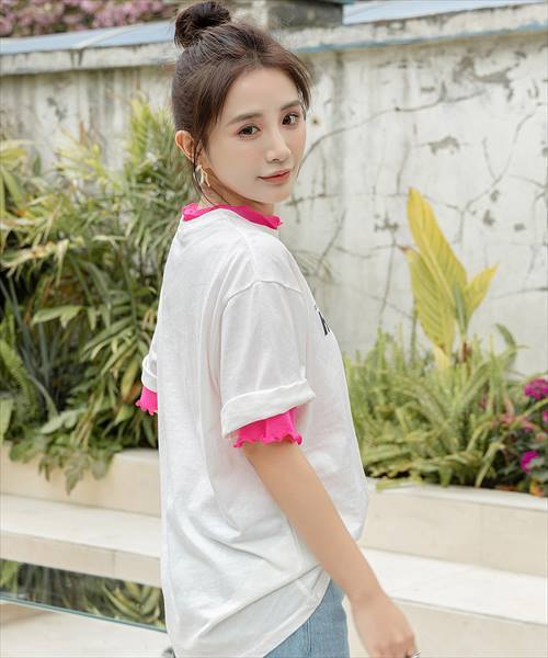 シンプルになりがちなTシャツも首元や袖口に