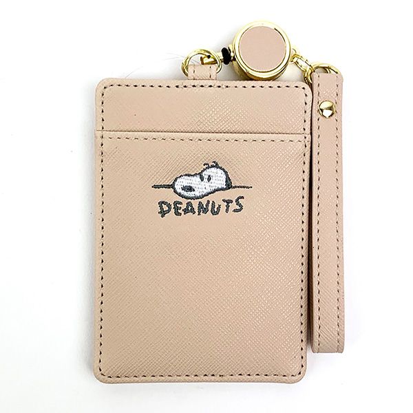 スヌーピー リール付きシングルパスケース デスク刺繍 PEANUT 定期入れ・ICカード ベージュ