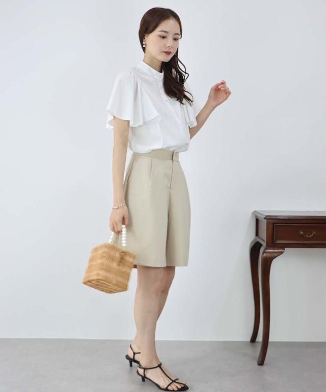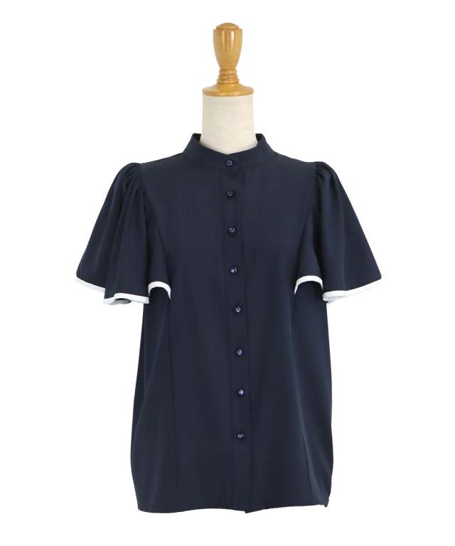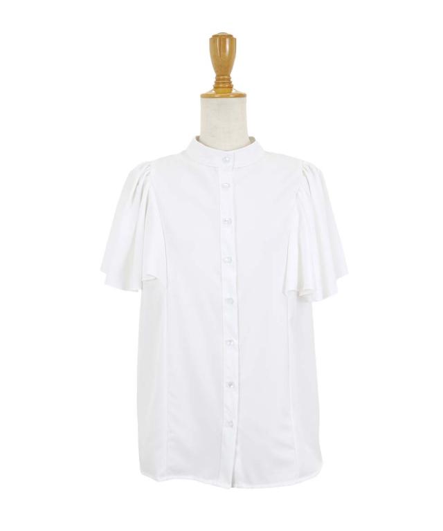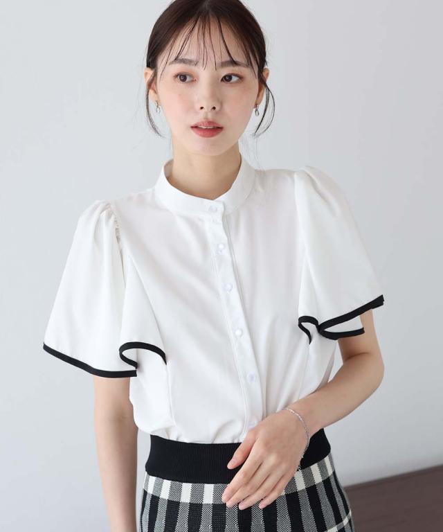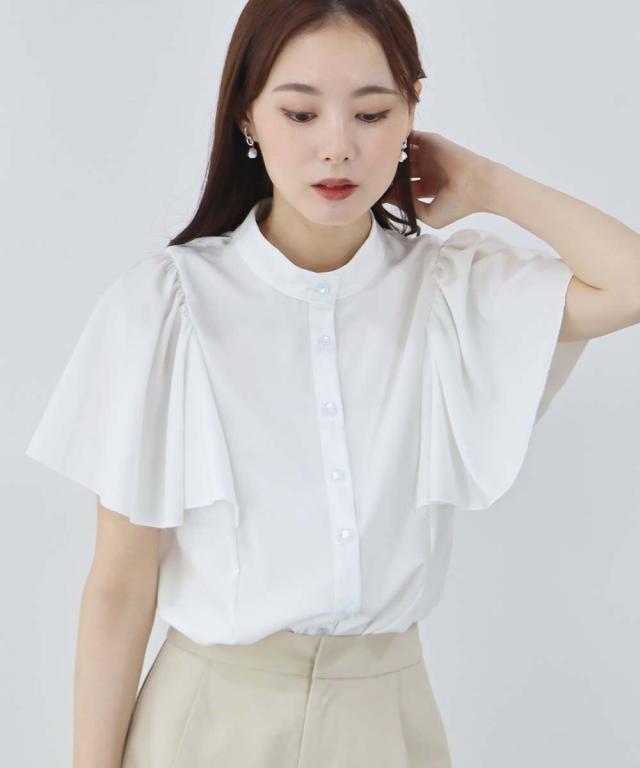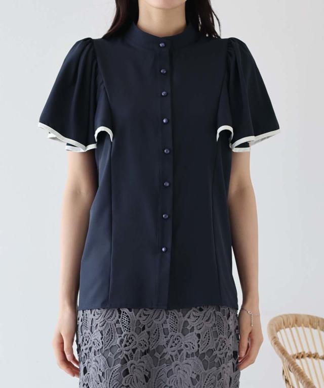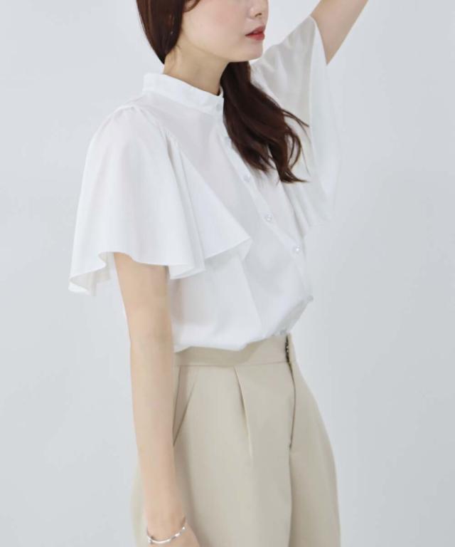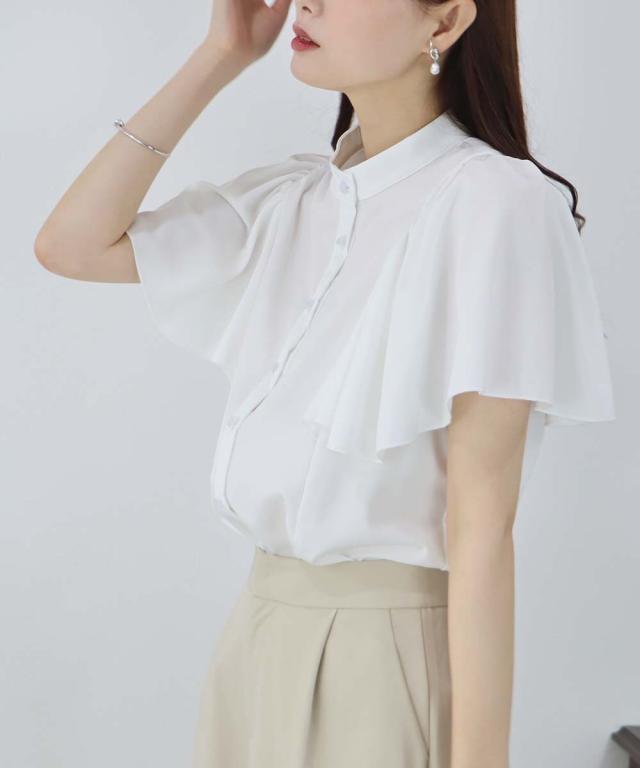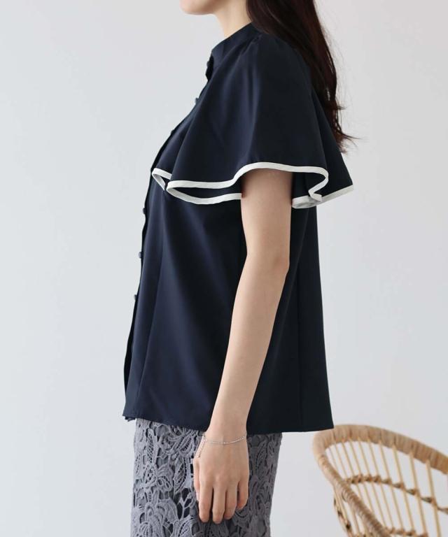 ケープ風デザインのフレアスリーブブラウス