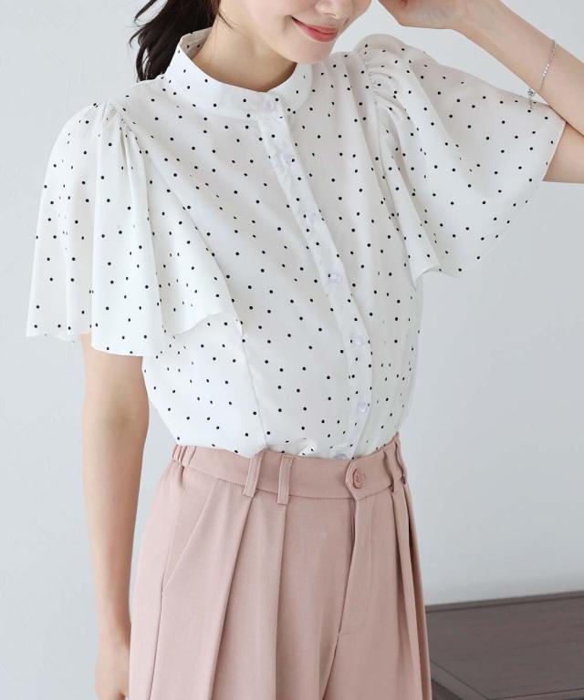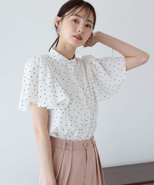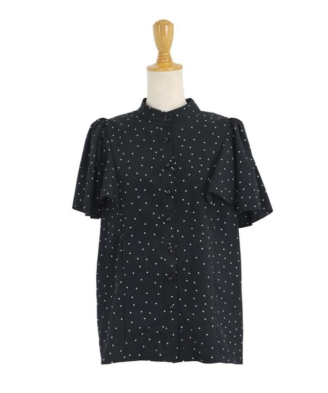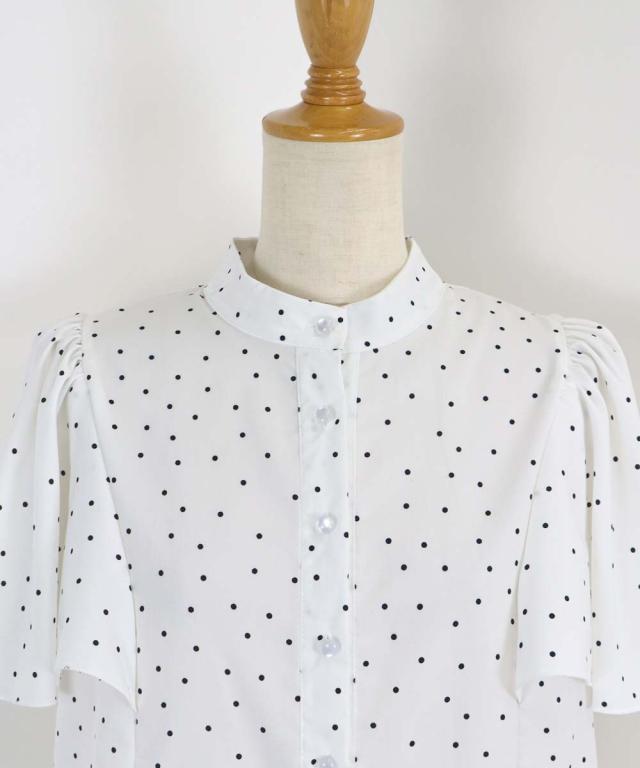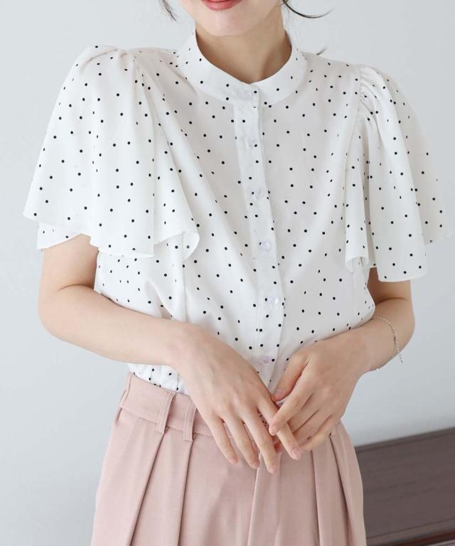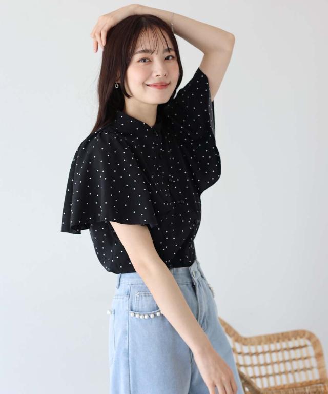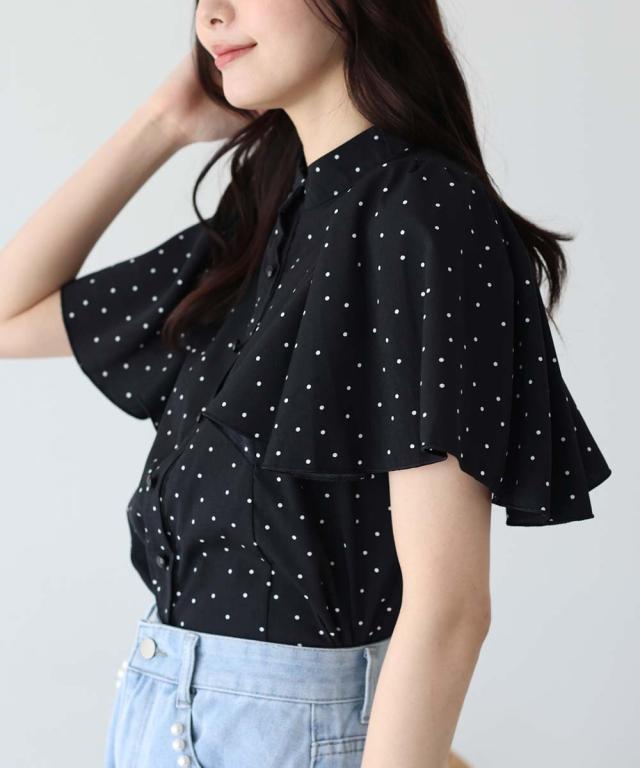 ドット&花柄フレアケープスリーブブラウス
