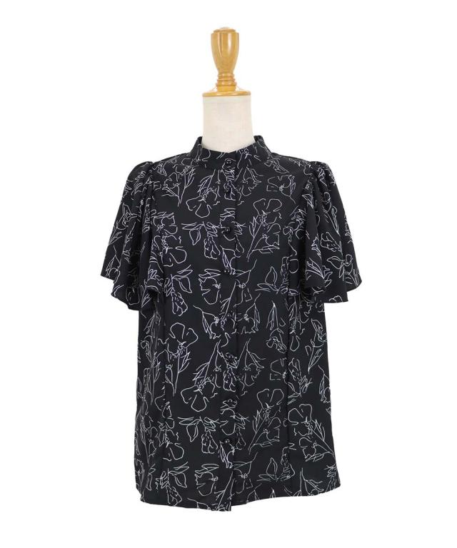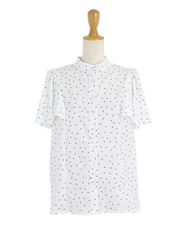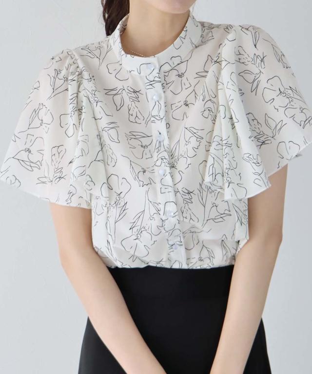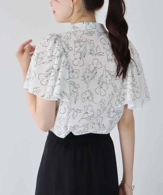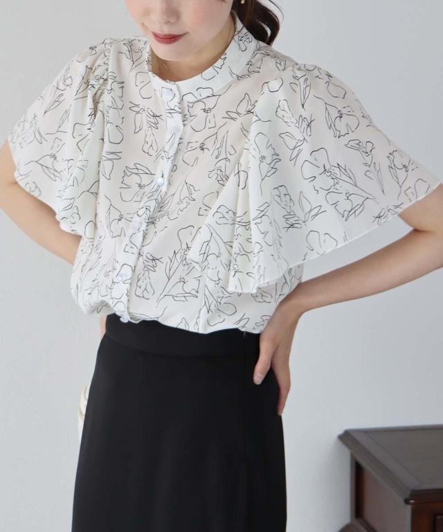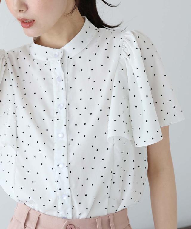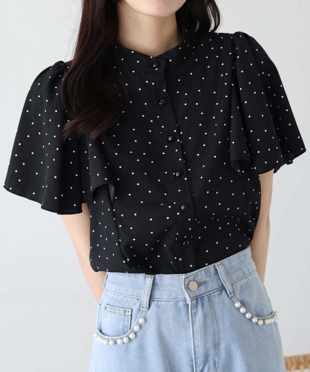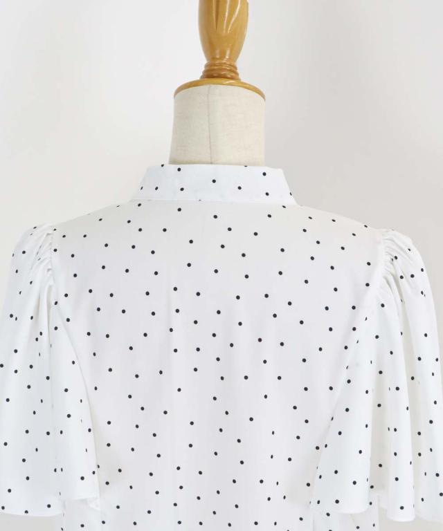 ドット&花柄フレアケープスリーブブラウス