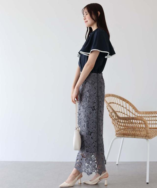 トレンドのマーメイドスカートやタイトスカートなどと合わせてフェミニンに。