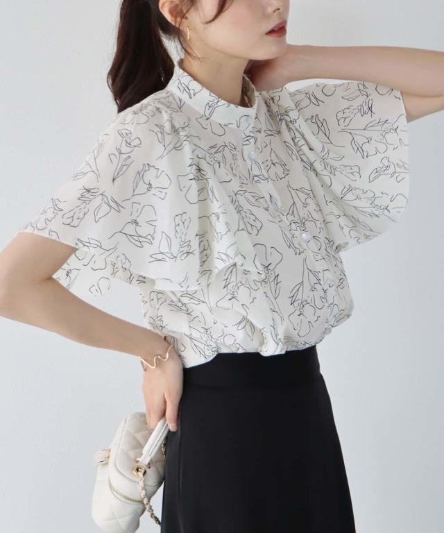 フェミニンなディティールがたっぷり詰まった無地&フラワープリントブラウス。