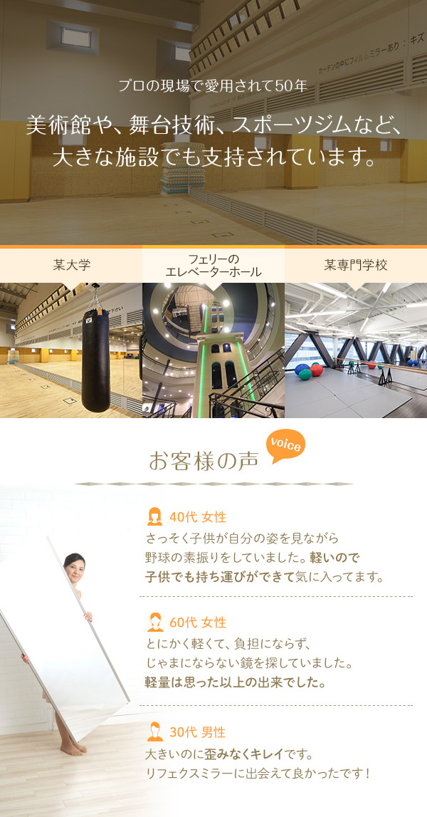 驚きの軽さ 移動、設置もらくらく くっきり鮮明に映る 業務用で長年使用されているプロ仕様のミラー
