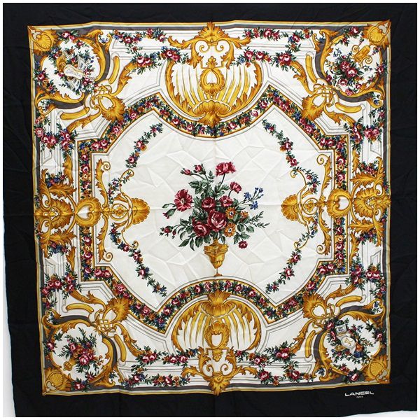 商品名ランセル シルク スカーフ ブラック×マルチカラー 花柄 LANCEL
