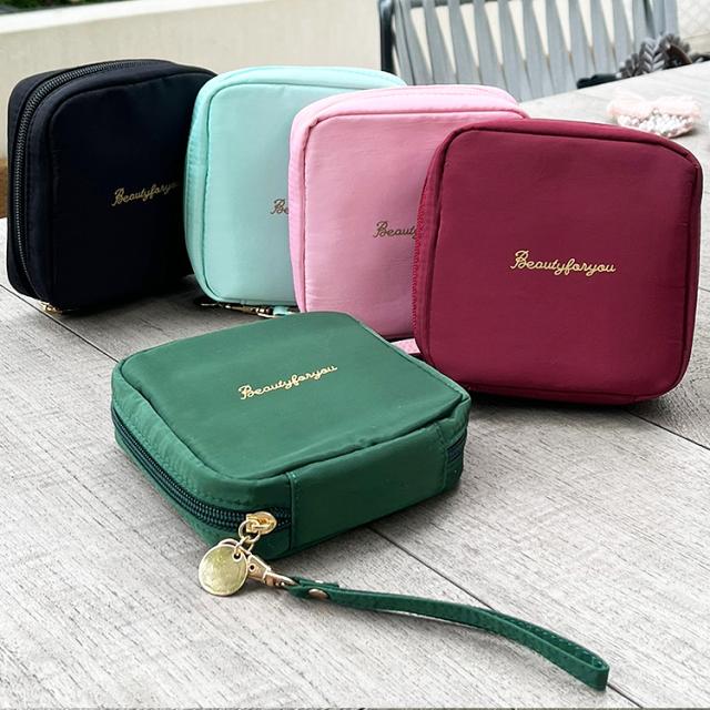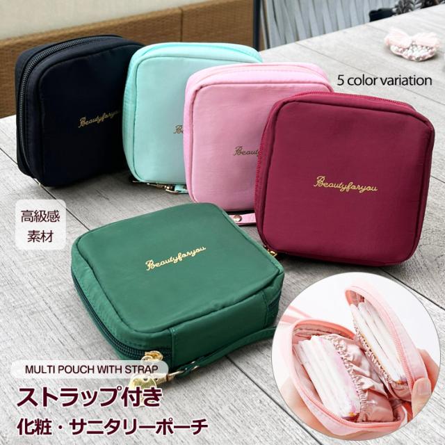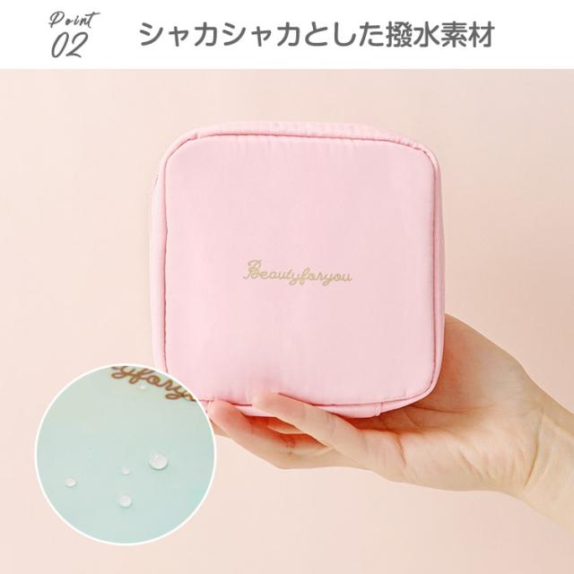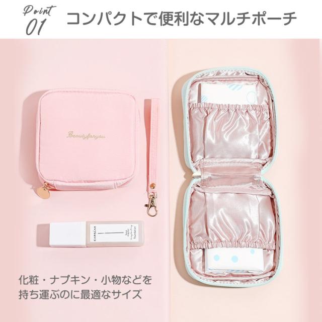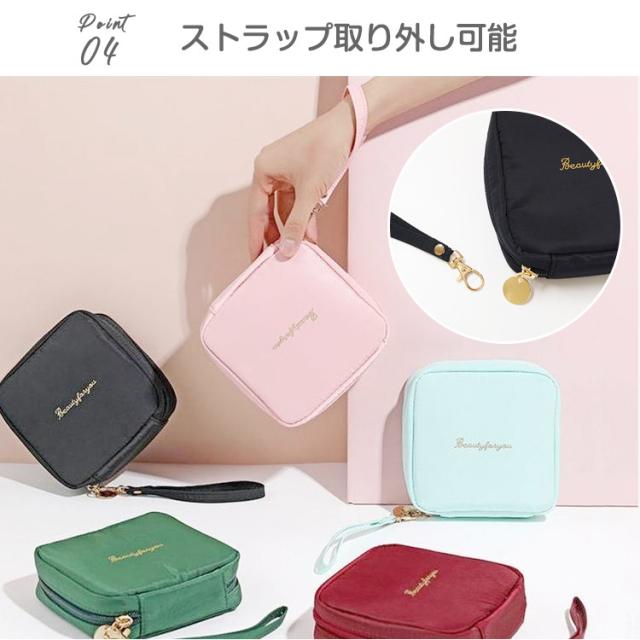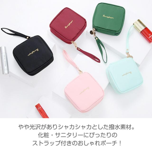スクエアポーチ ポーチ 小物入れ メイクポーチミニティッシュ 生理用ナプキン収納 サニタリーポーチ 機能的マチあり 仕分け 旅行 ジム ポケット