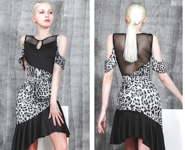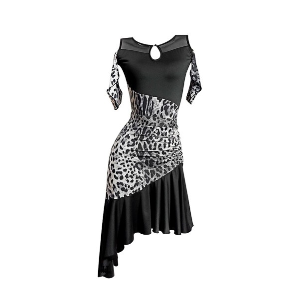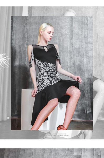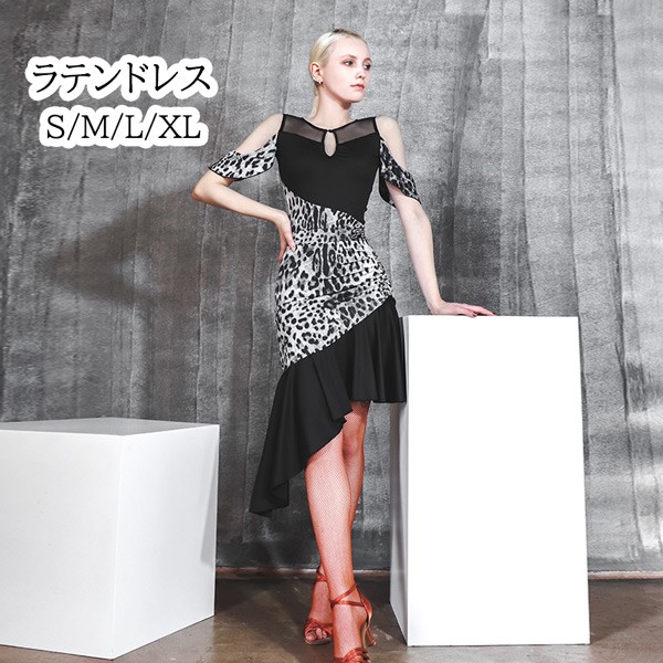 社交ダンス ラテンドレス ラテンダンス衣装 競技用 レオタード スカート 競技用 演出服 競技用 練習着 セクシー ルンバ サンバ タンゴ チャチャチャ ラテン ステージ衣装ラテンダンス ヒョウ柄 ブラック S M L 2L dm064l9l9la