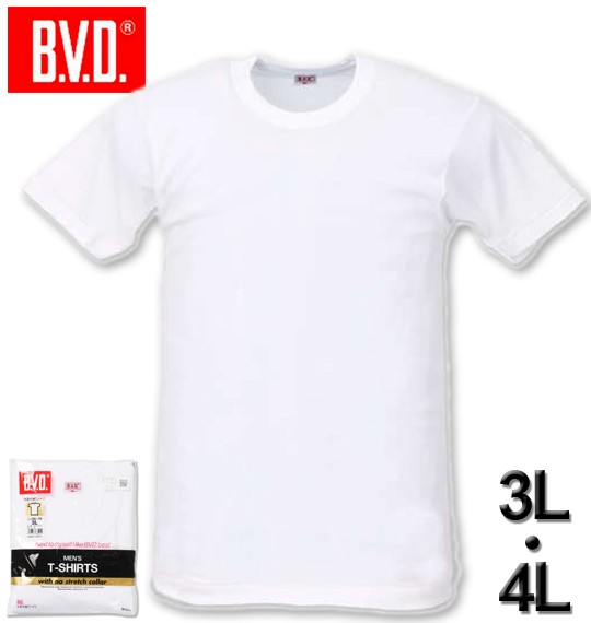 大きいサイズ B.V.D. 丸首半袖Tシャツ ホワイト 3L 4L/1249-2270-1-16