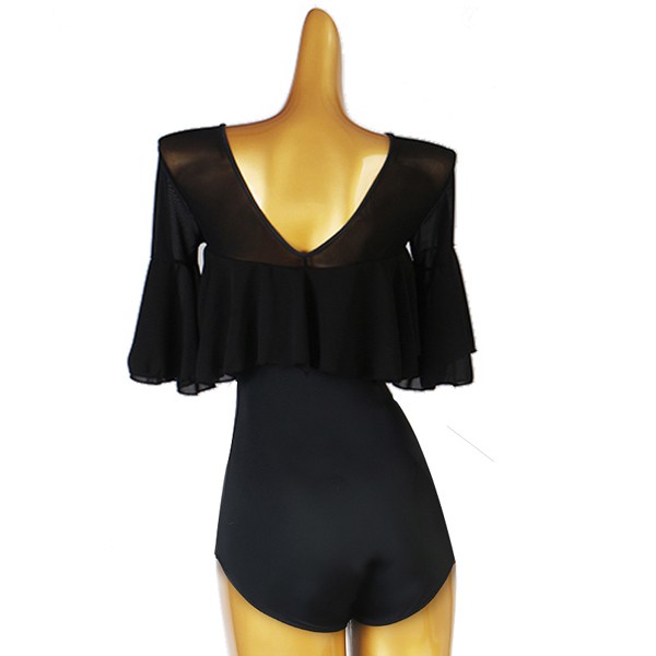 【送料無料】社交ダンス衣装 トップス 透け感 レオタード式 社交ダンス トップス 練習着 長袖 春 秋 冬 競技用 ダンスウェア ステージ衣装 大きいサイズ