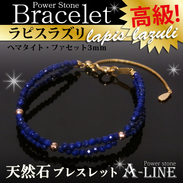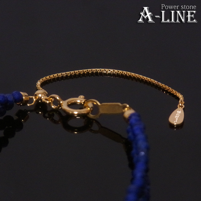 AAAラピスラズリ・ファセット2.5mm、ヘマタイト・ファセット(コーティング)金色3mm、SILVER925ひき輪&スライドアジャスター金色、形状記憶超弾性ワイヤー、ワンプッシュ